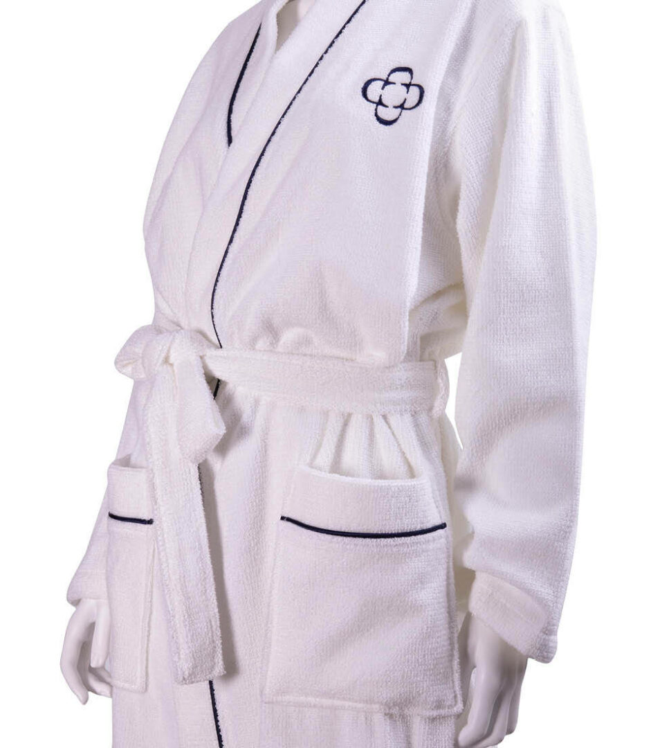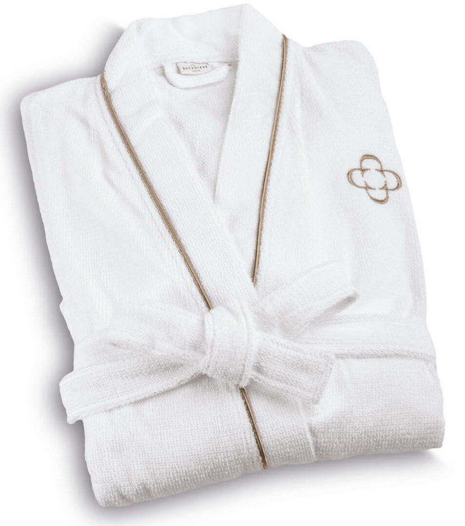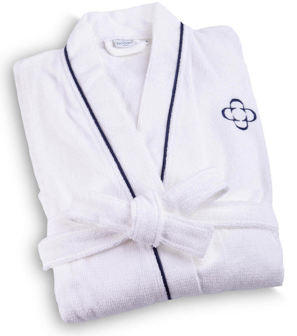 Kimono bathrobe in solid color highly absorbent cotton with embroidered Dondi Home logo, size S/M.
