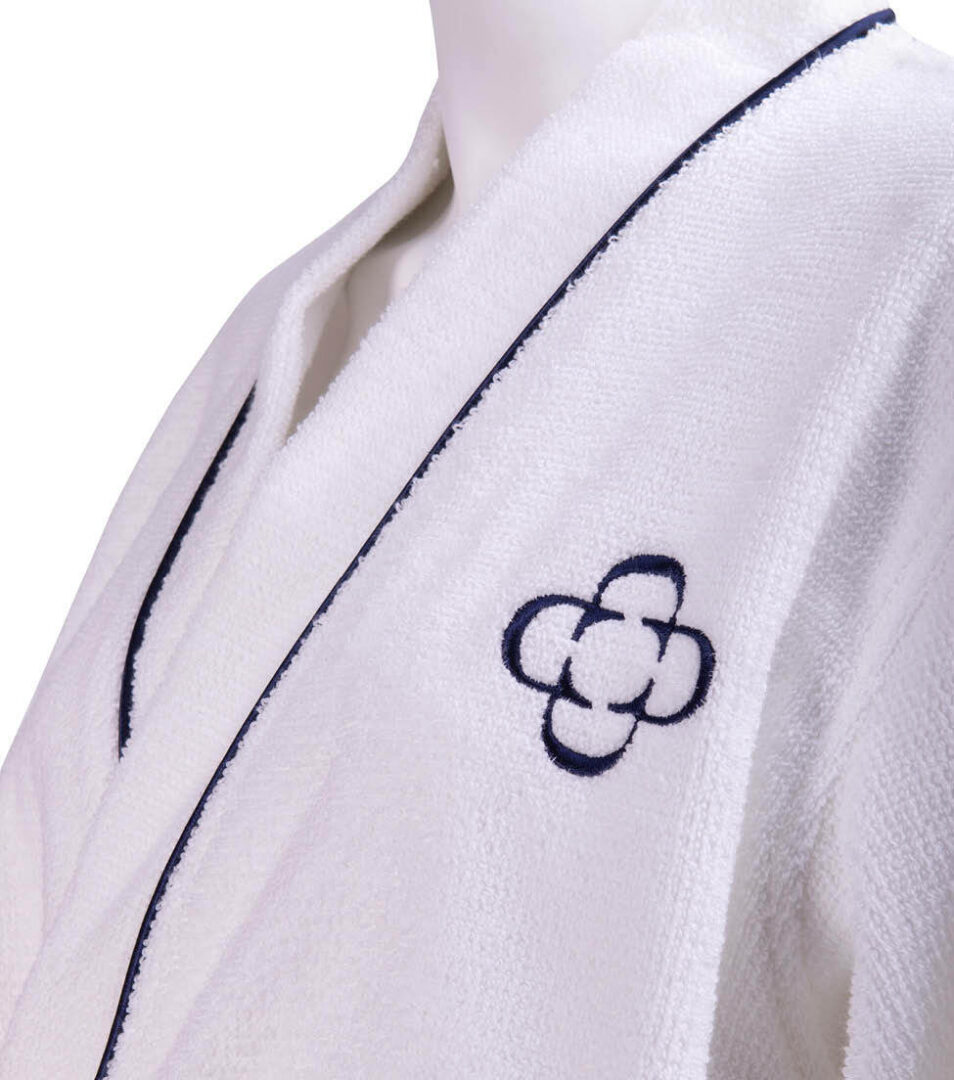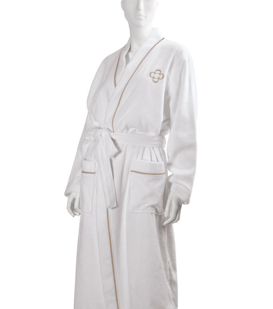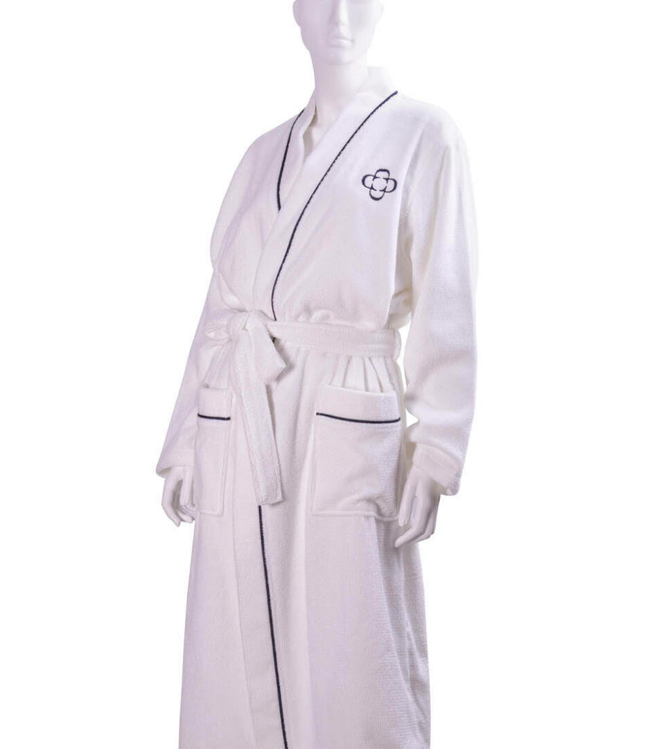Kimono bathrobe in solid color highly absorbent cotton with embroidered Dondi Home logo, size S/M.