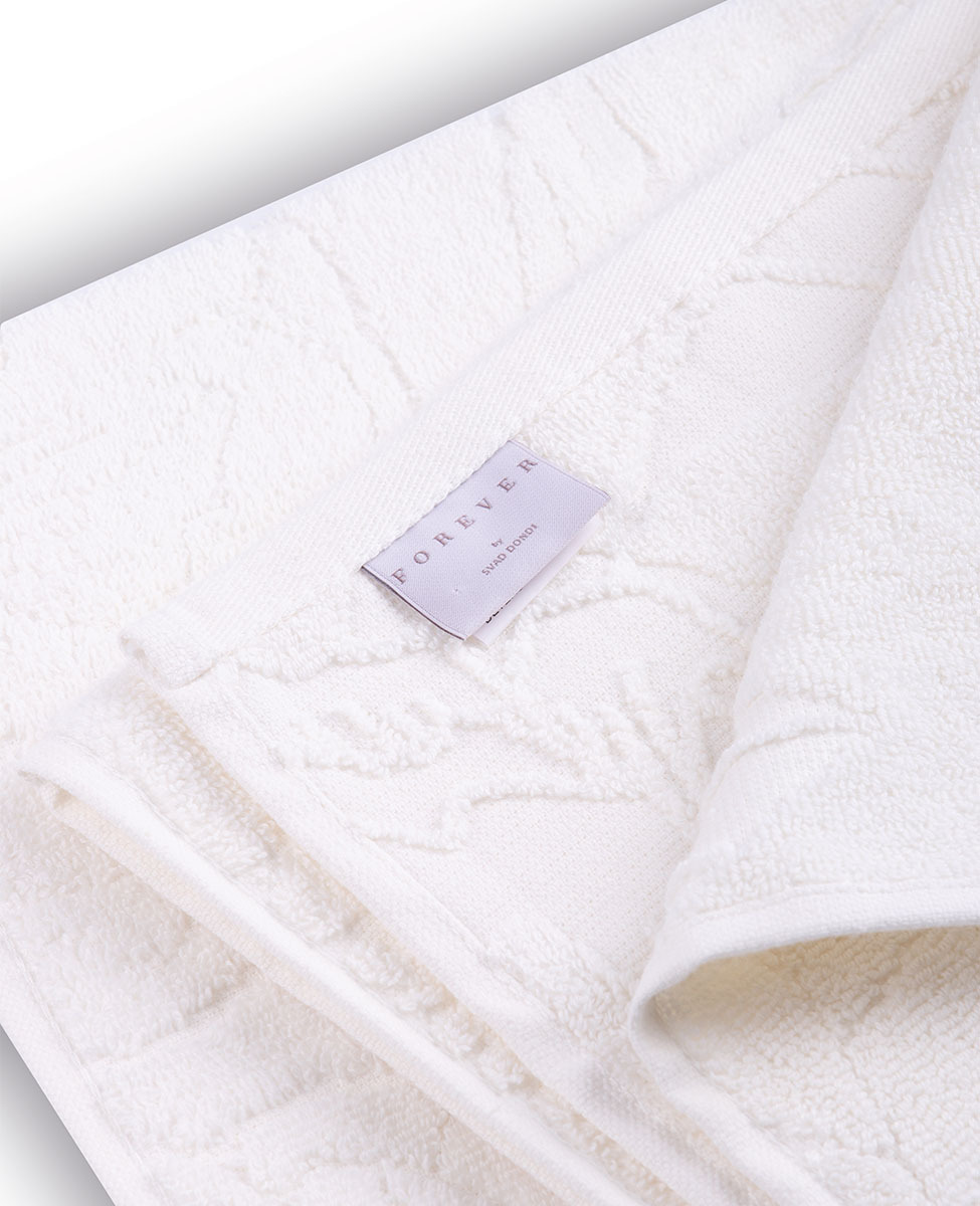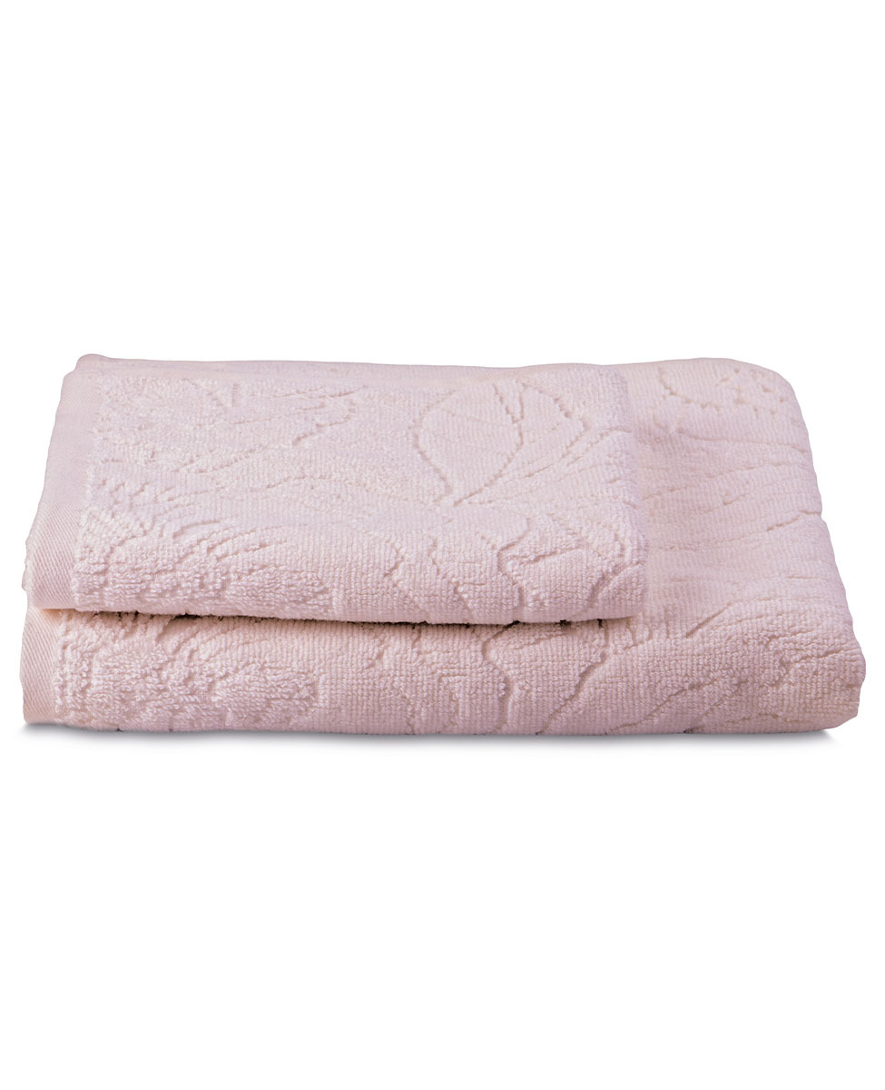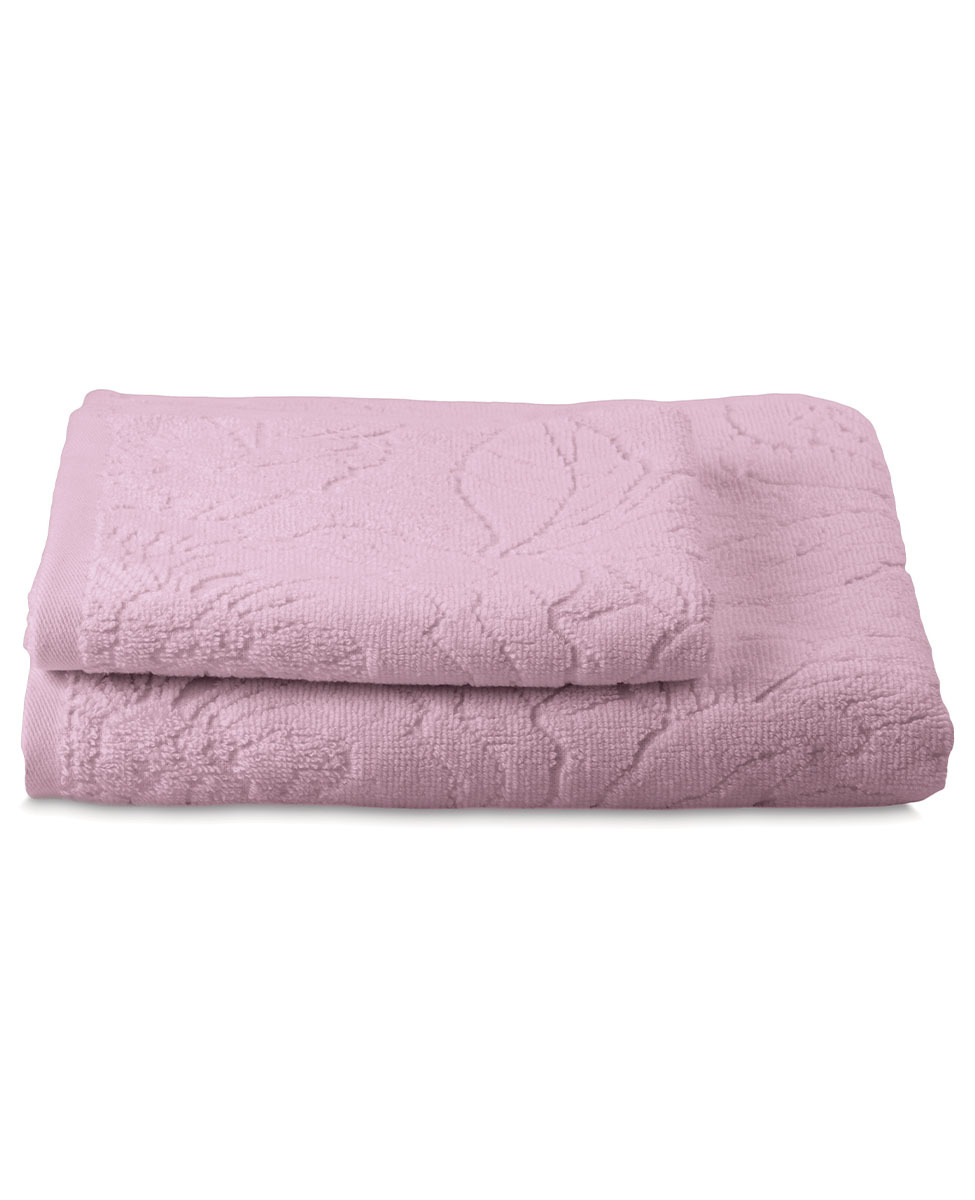 Towel set 2 pieces in solid color with floral jacquard pattern.