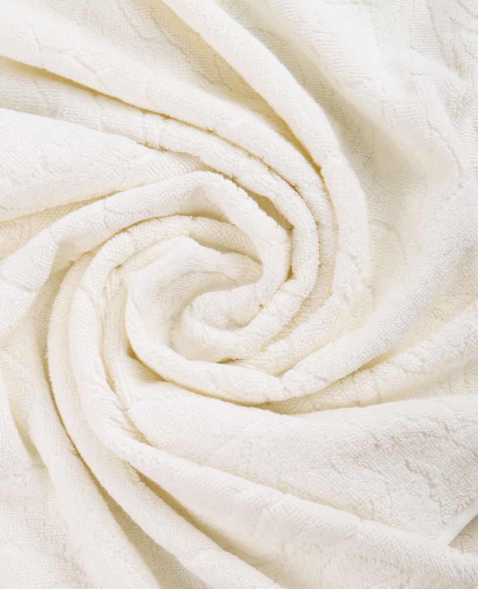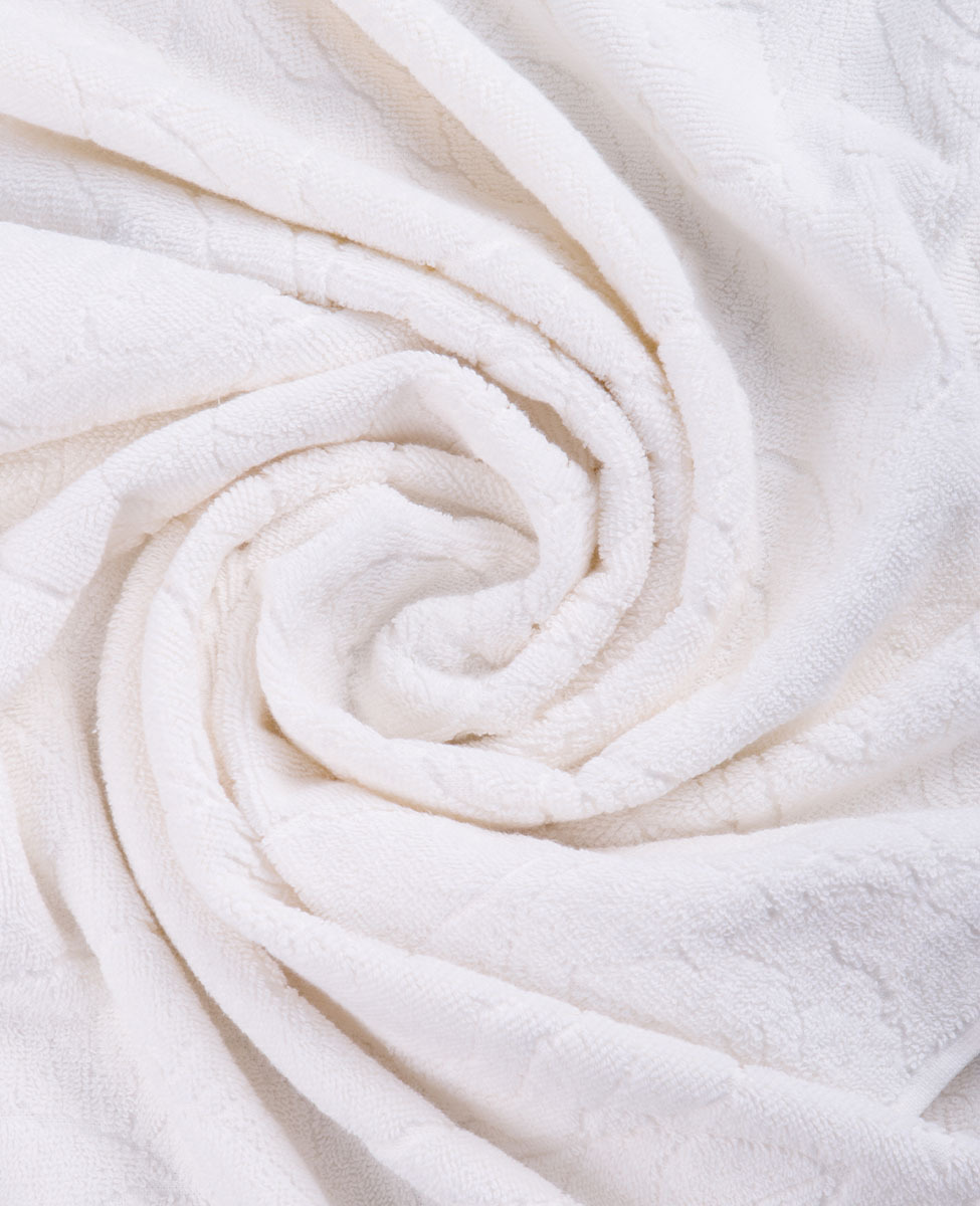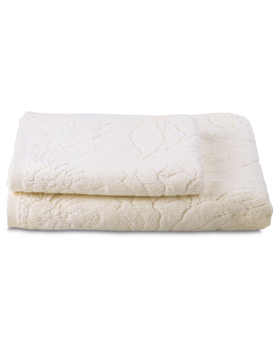Towel set 2 pieces in solid color with floral jacquard pattern.
