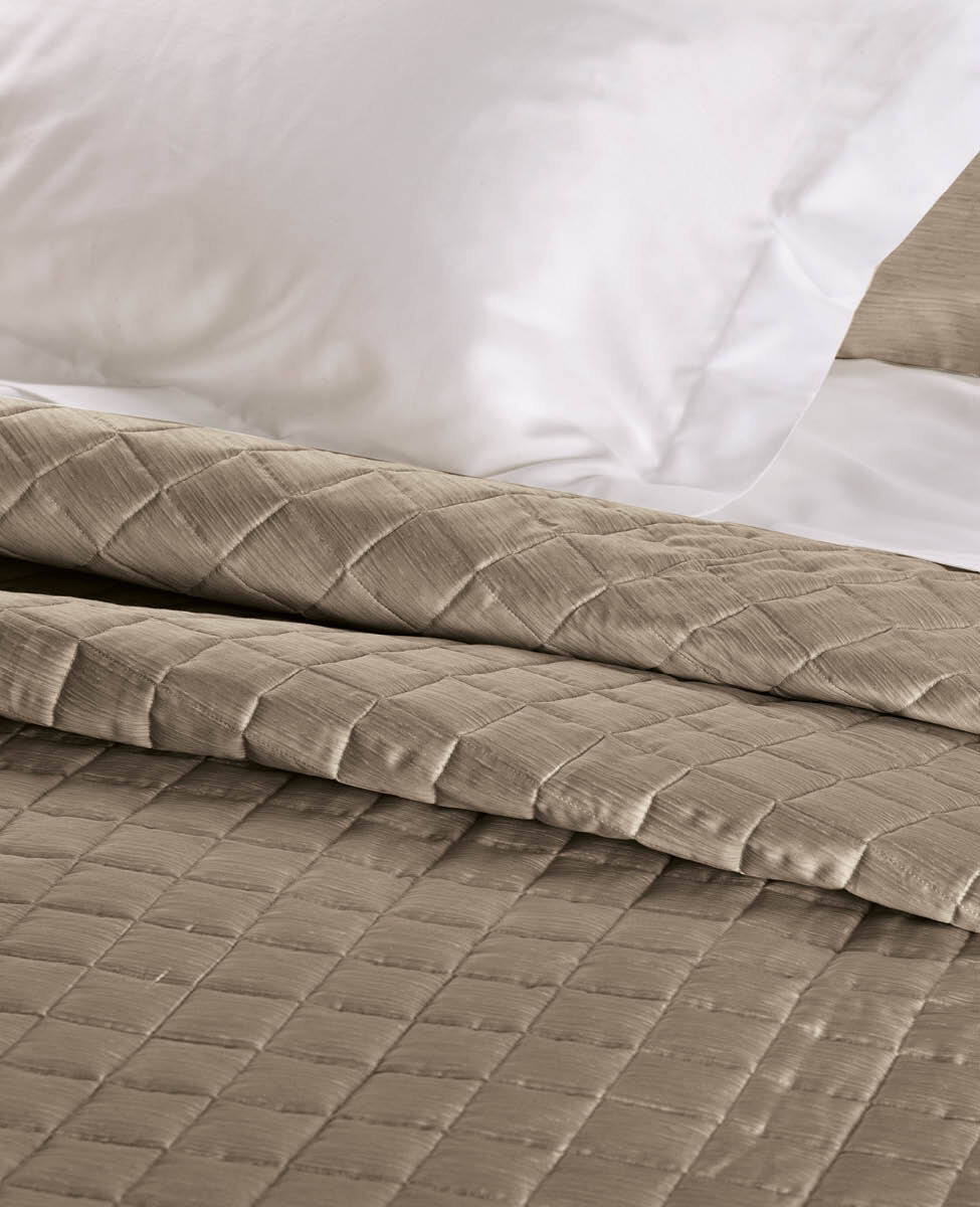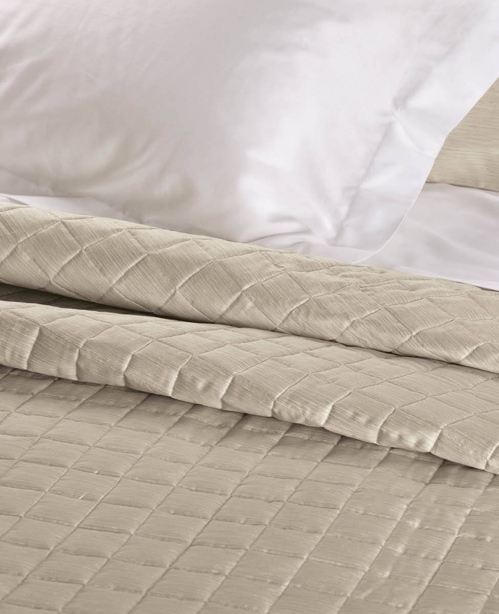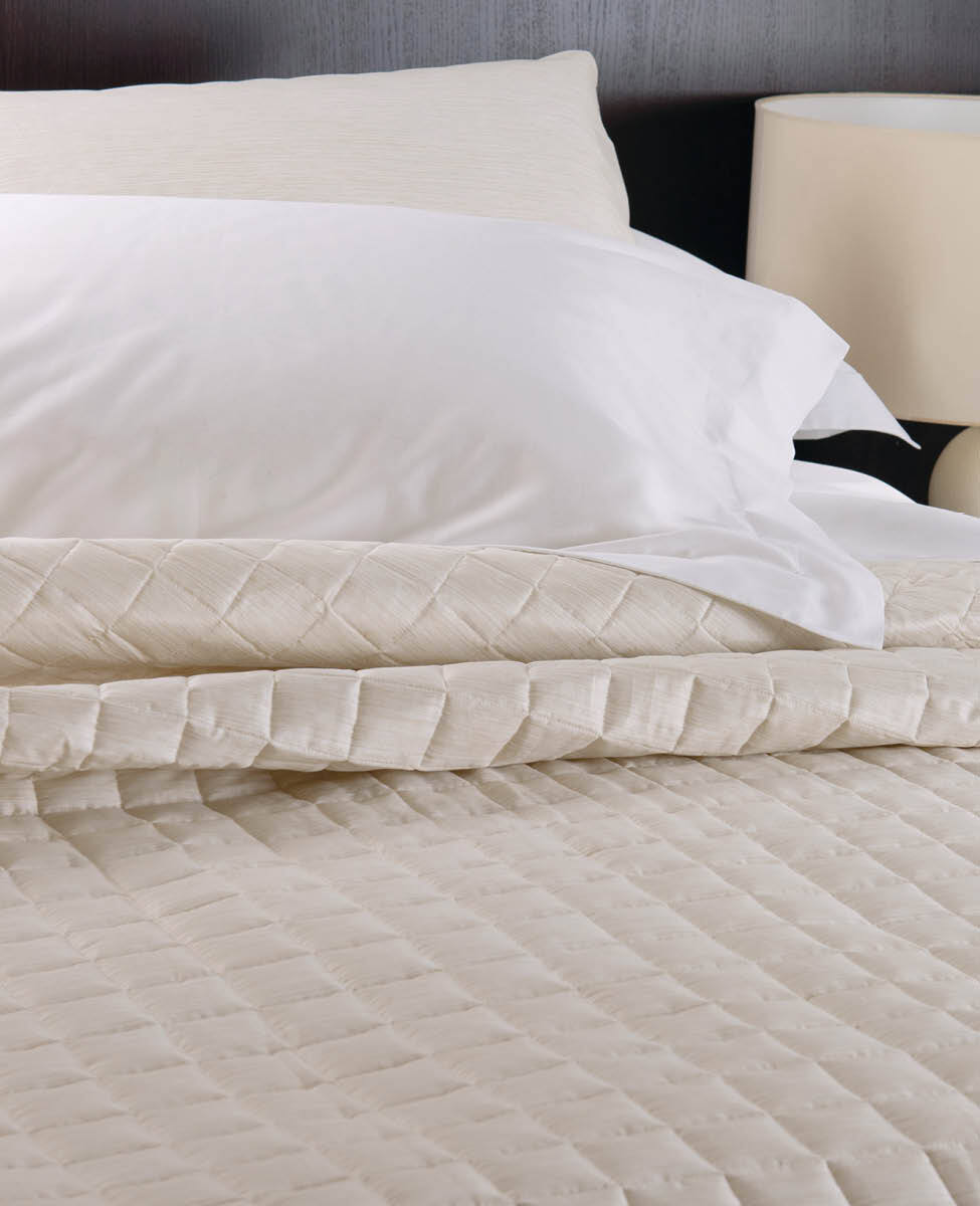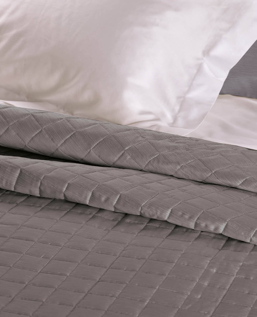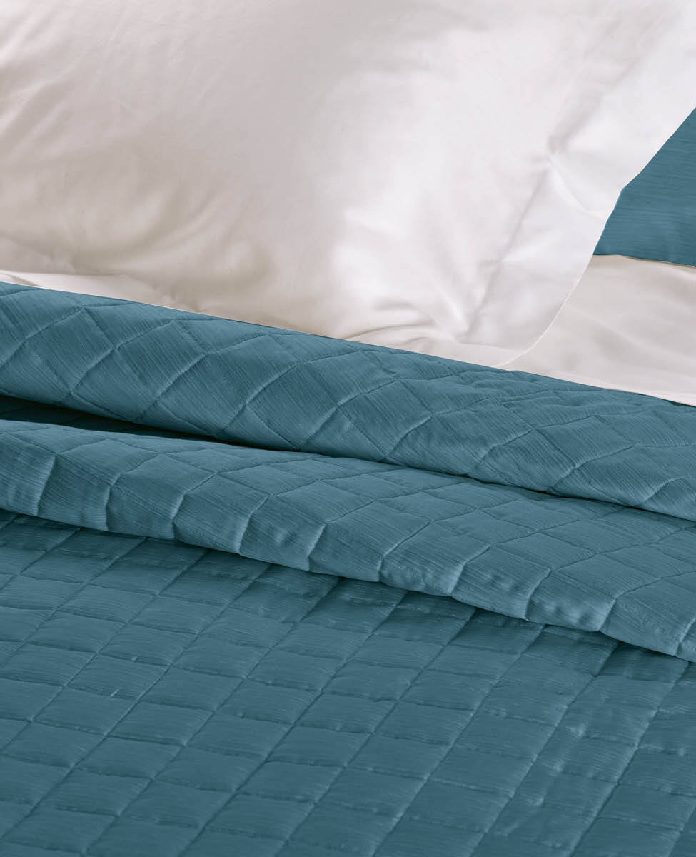 Our timeless classic, the line Finiseta! Quilted bedspread for double bed in printed cotton sateen, silk effect pattern.