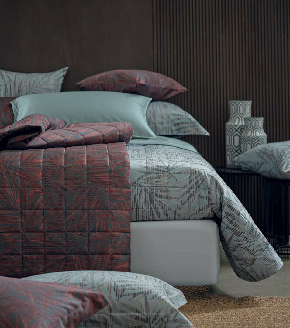 Quilted bedspread for double bed with a printed pattern on cotton sateen.