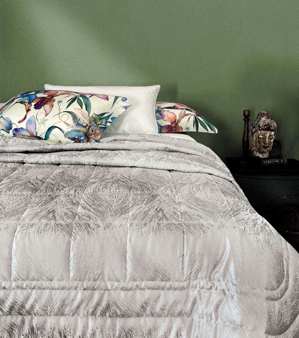 Elegant, quilted bedspread for double bed with jacquard pattern.