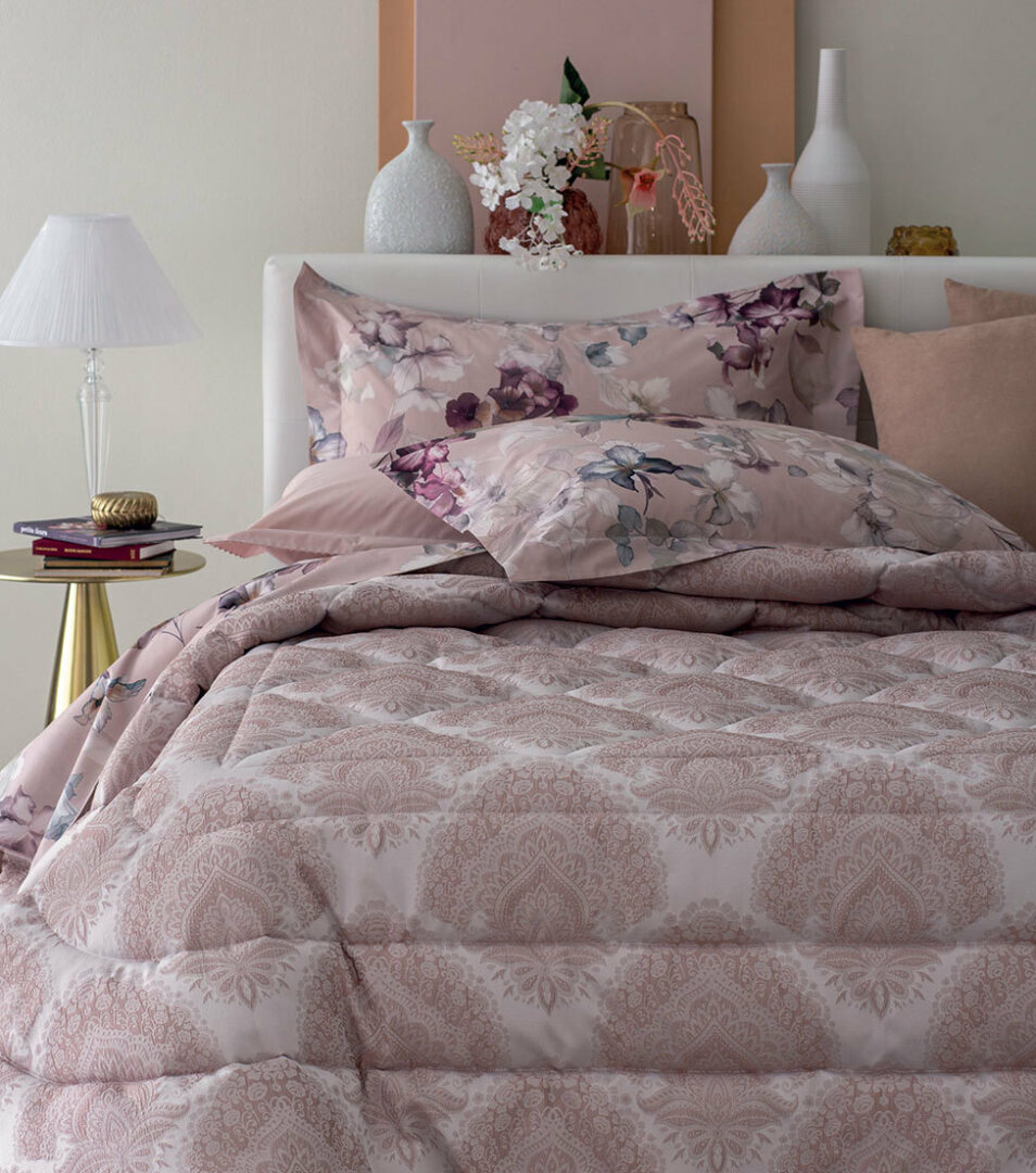 Warm and enveloping comforter for double bed with jacquard pattern.