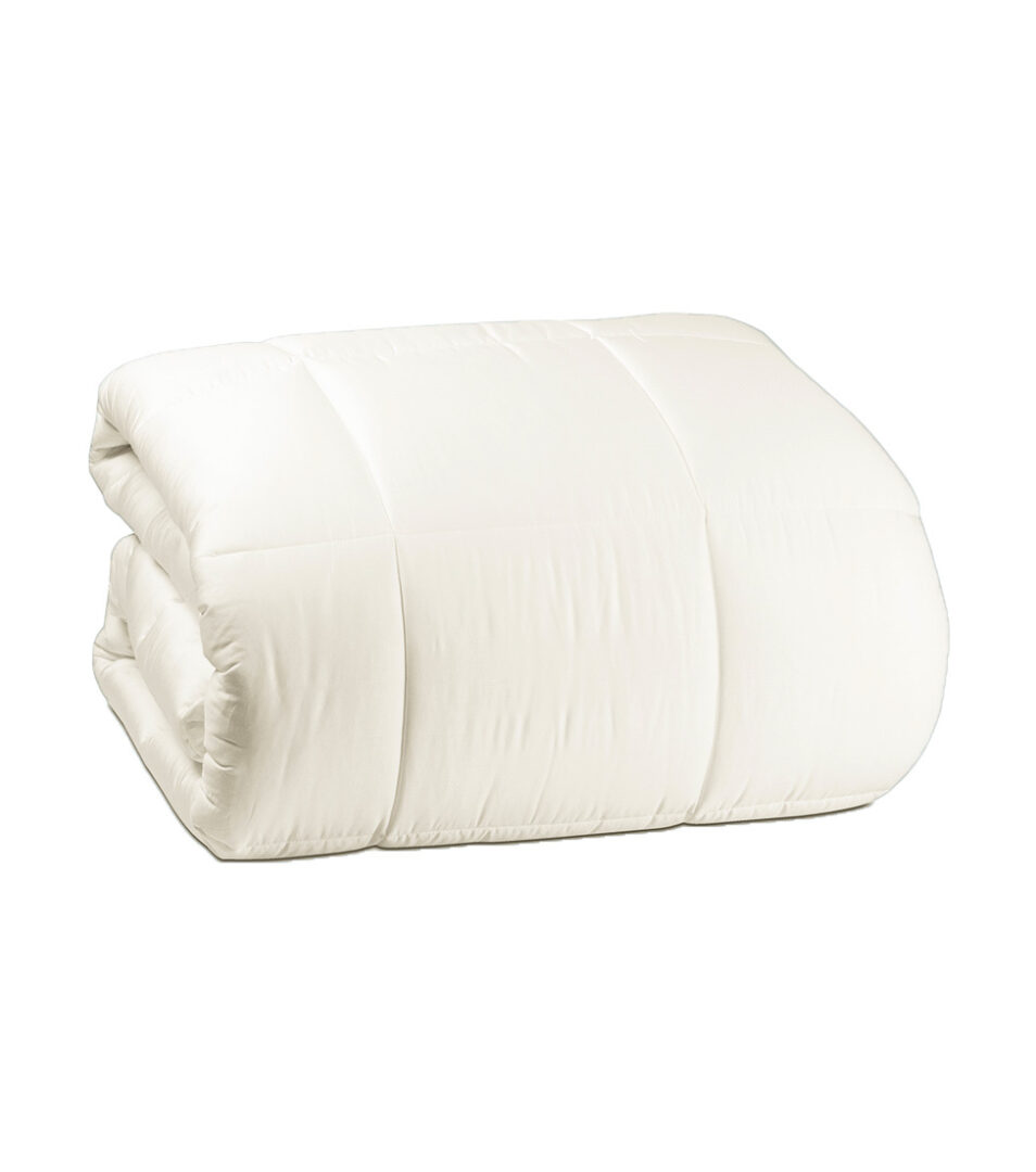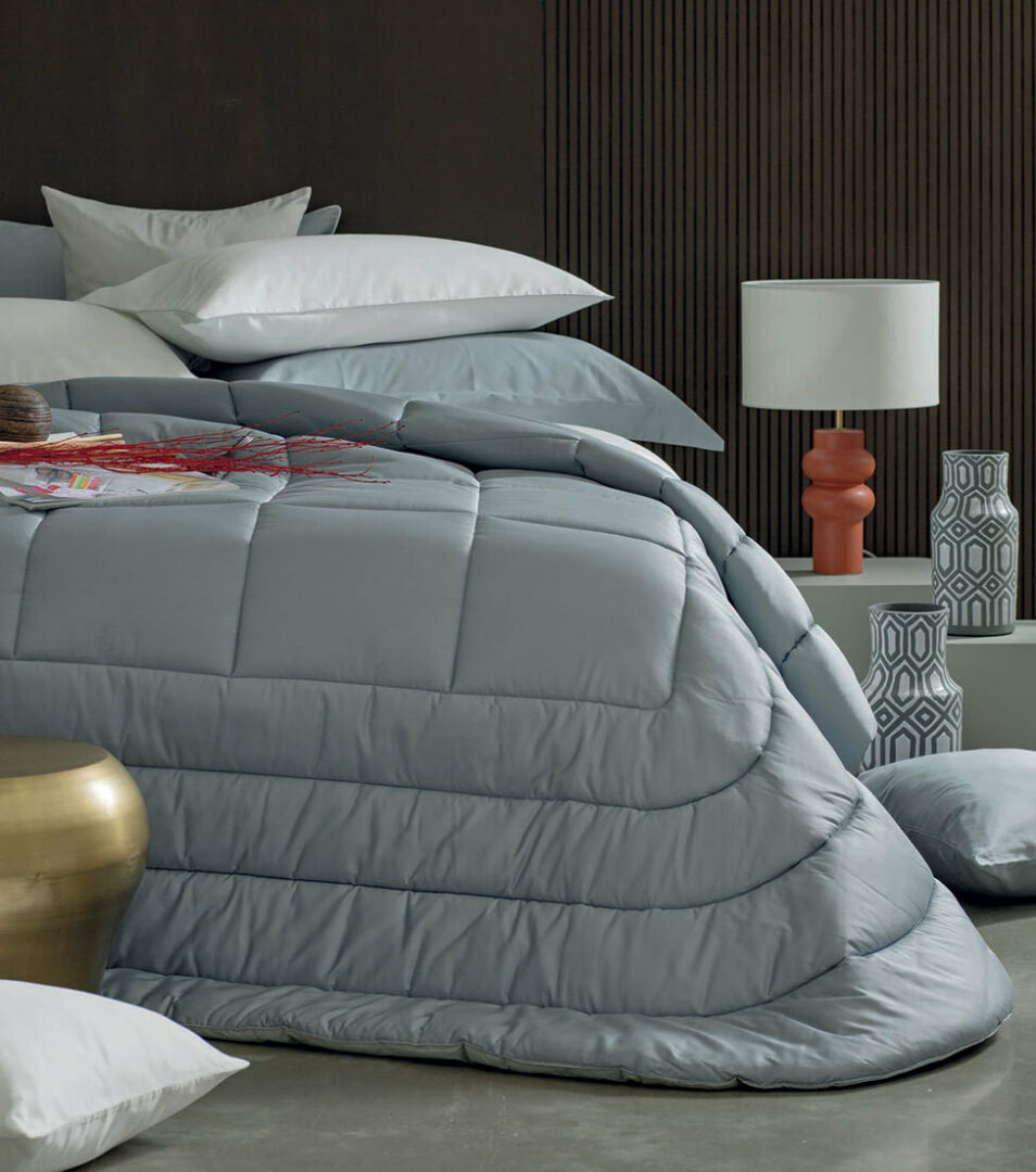 Warm comforter for double bed in solid color cotton satin.