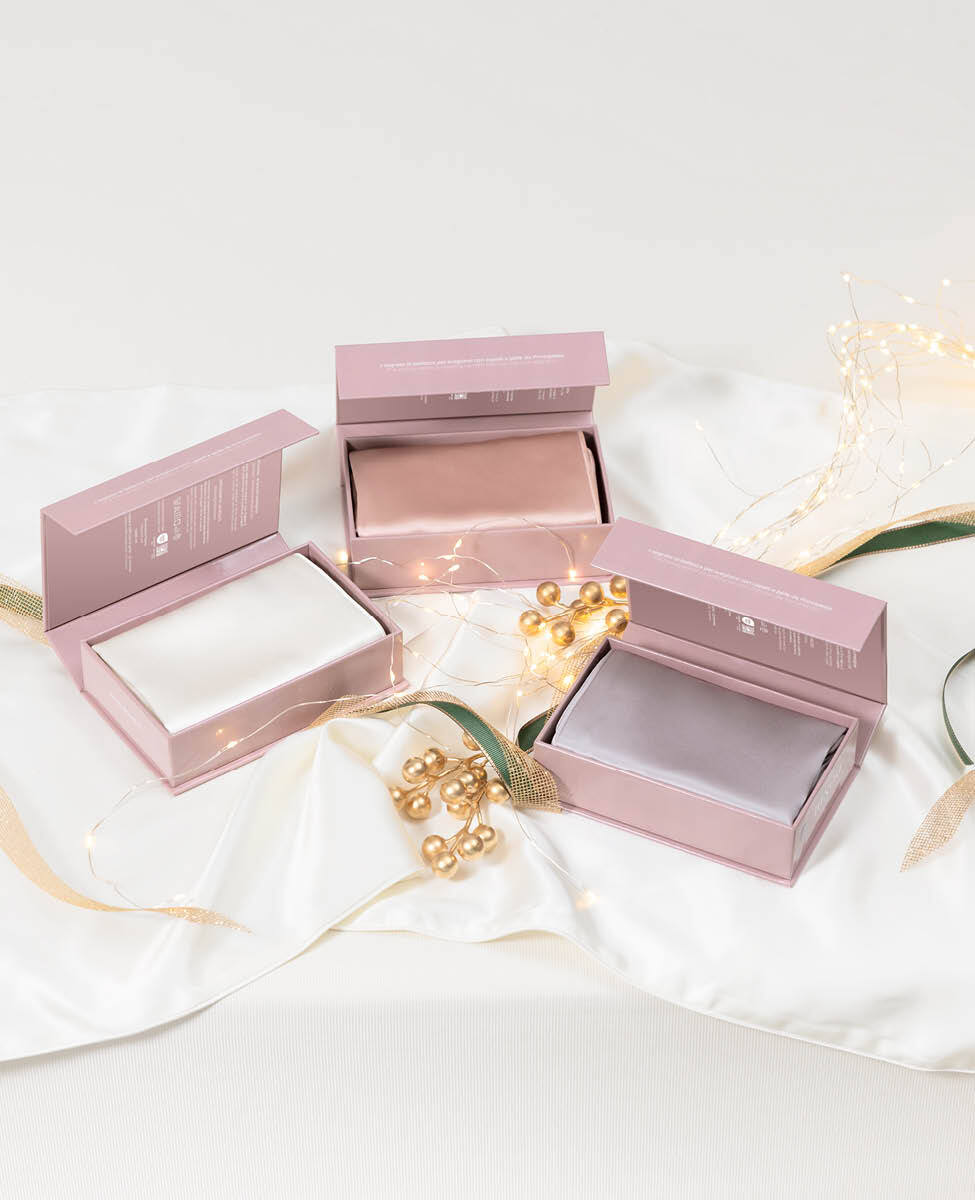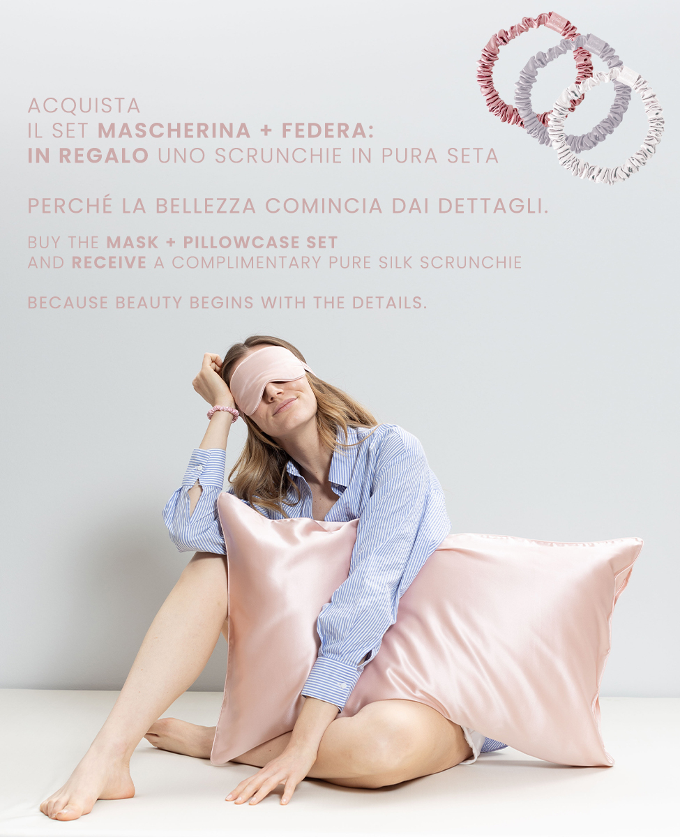 Recommended by the most authoritative dermatologists worldwide, silk is the N.1 beauty secret of celebrities. Naturally hypoallergenic and antibacterial, it minimizes friction and abrasion, preventing sleep creases and split ends.