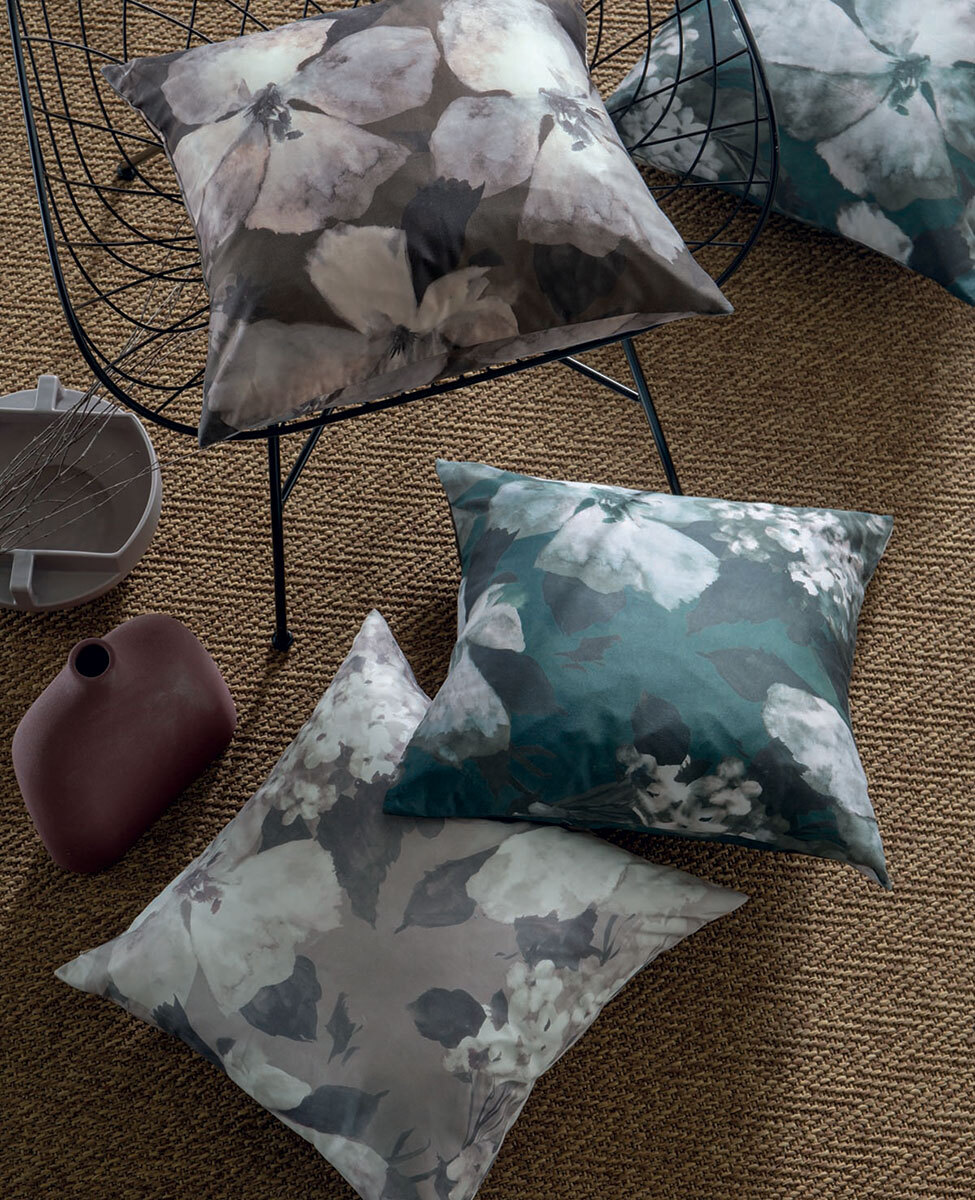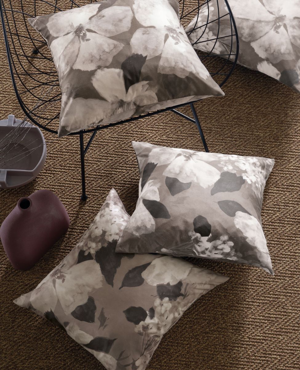 Decorative cushion in printed cotton sateen with all-over pattern and removable padding.