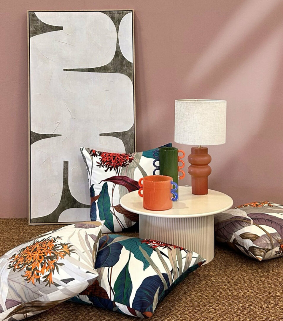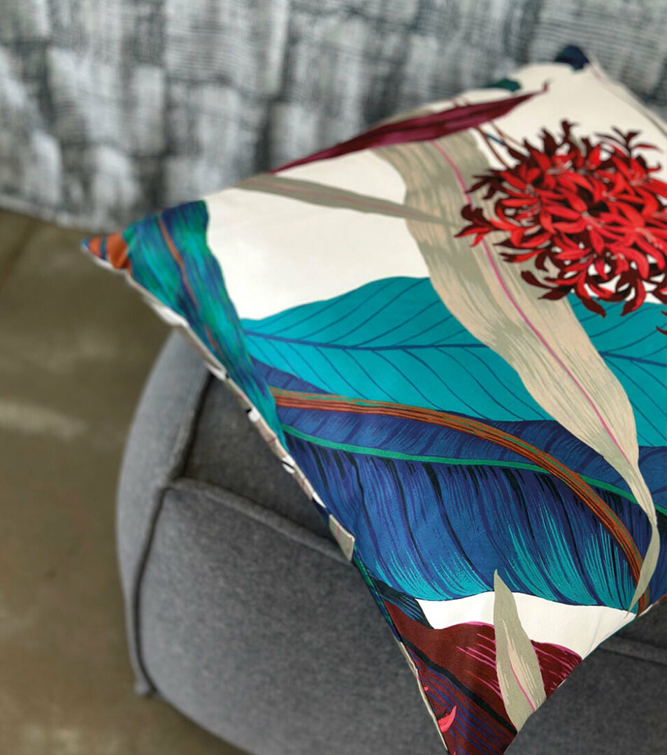 Decorative cushion in printed cotton sateen with all-over pattern and removable padding.
