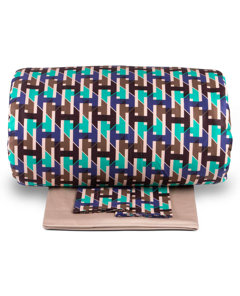 Duvet cover set for double bed in printed cotton sateen with back side of the cover in solid cotton sateen.