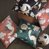 Duvet cover set for double bed in printed cotton sateen with a delicate oriental pattern on a coloured background, bottom side of duvet cover and bottom sheet in solid cotton sateen. Give a touch of class to your home!