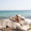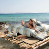 Duvet cover set for double bed in printed cotton sateen, bottom side and fitted sheet in solid cotton sateen.