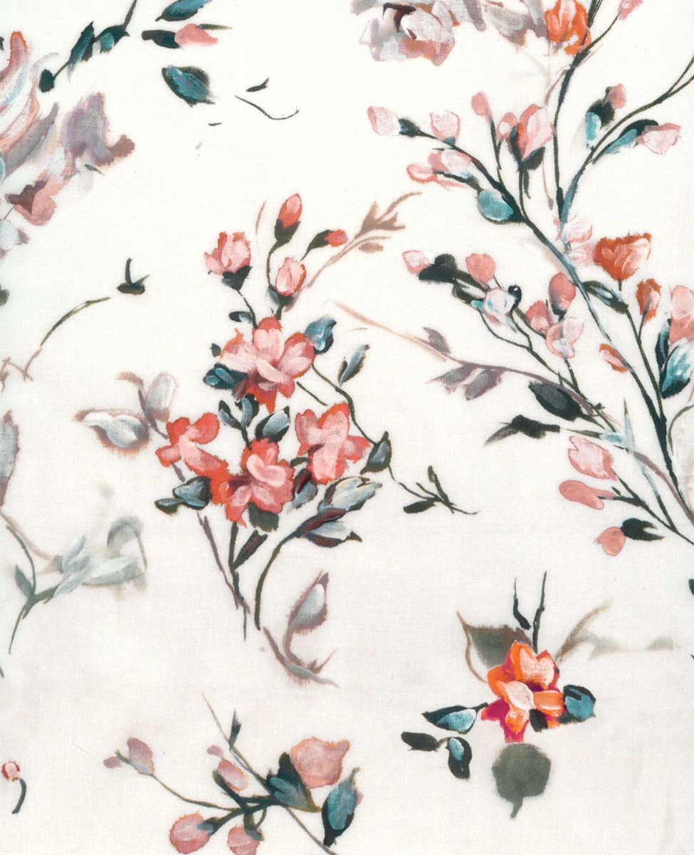 Duvet cover set 3 pcs for double bed in printed cotton percale, top side and pillowcases in printed fabric, bottom side in solid cotton percale.