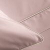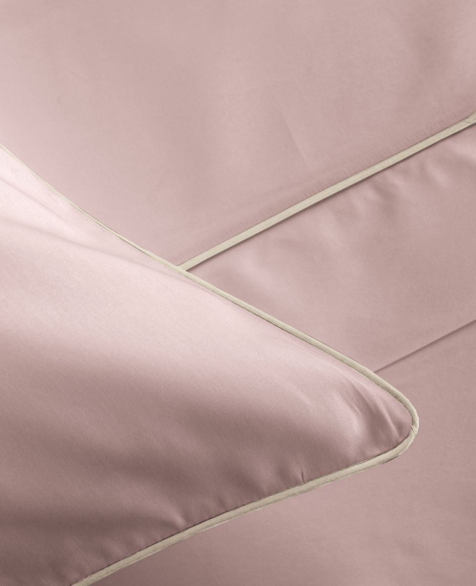 Sheet set with for double bed in solid cotton sateen, finished with piping in contrast color on flat sheet and pillow cases.