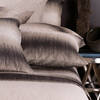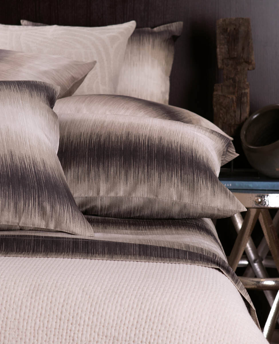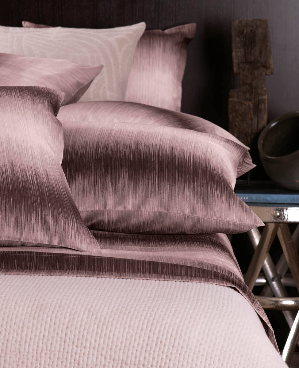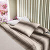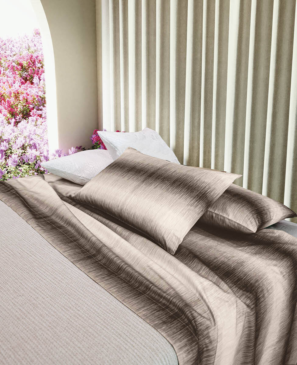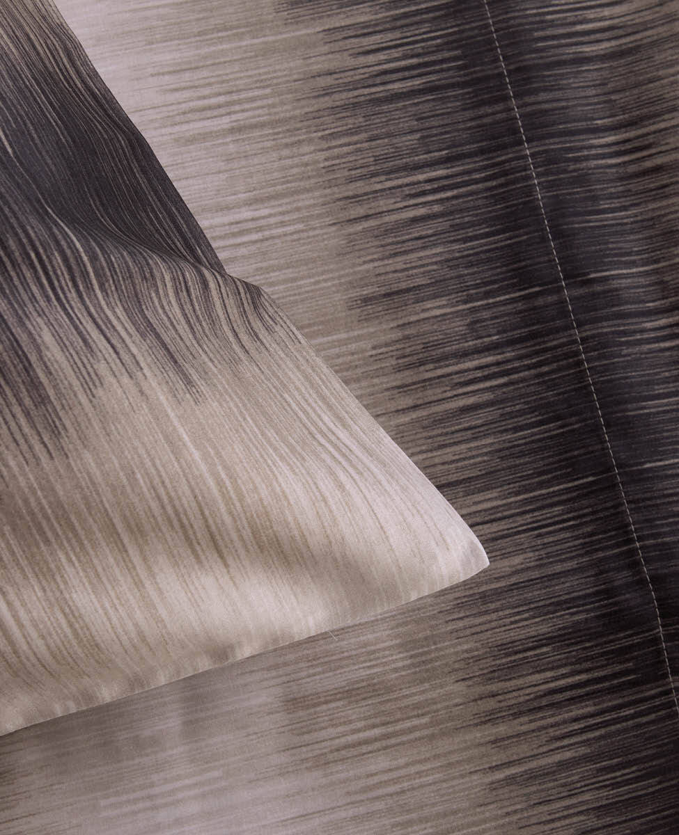 Sheet set for double bed in printed cotton sateen with bottom sheet in solid color.
