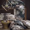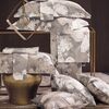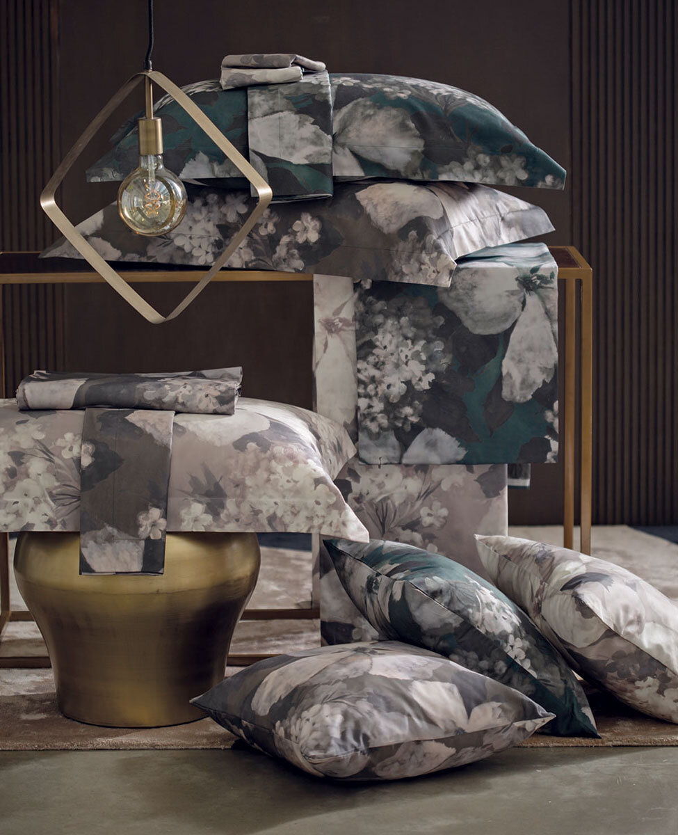 Sheet set for double bed 4 pcs in printed cotton sateen, bottom sheet in solid color.