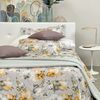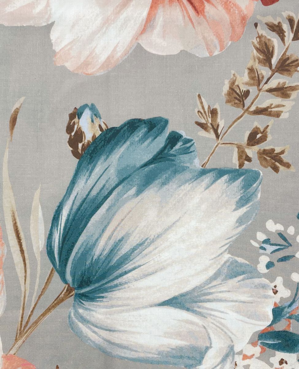 Sheet set for double bed in printed cotton percale, bottom sheet in solid cotton percale.