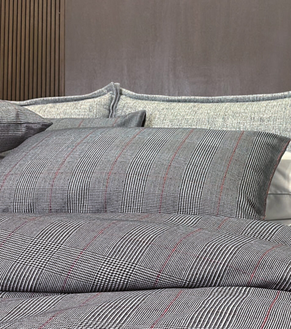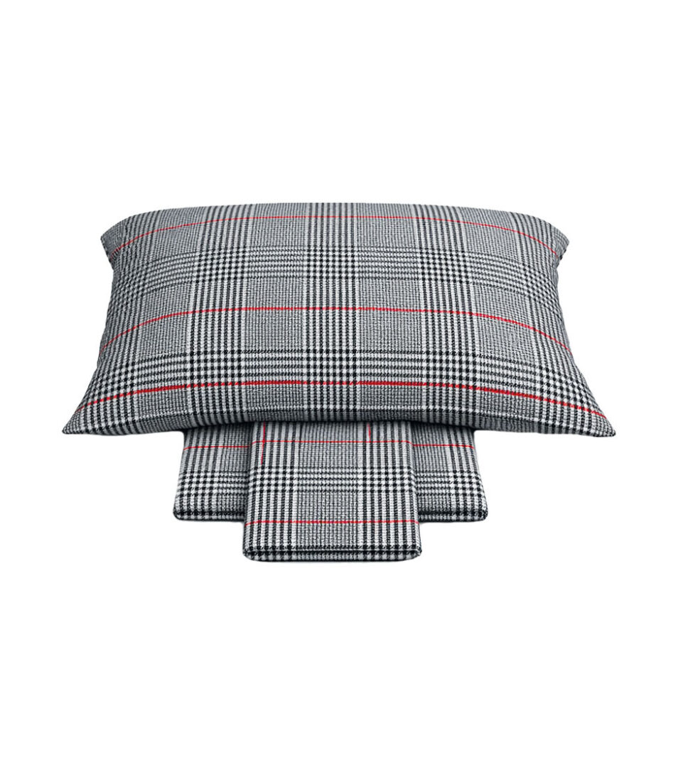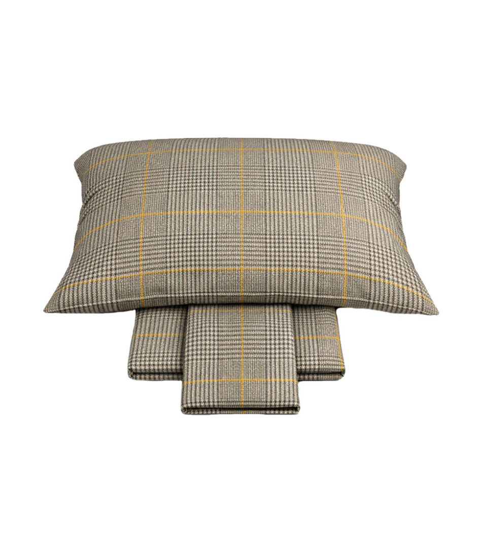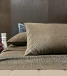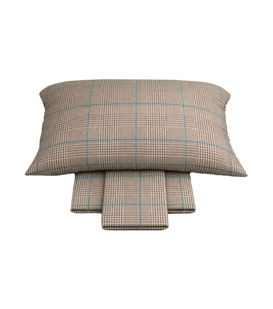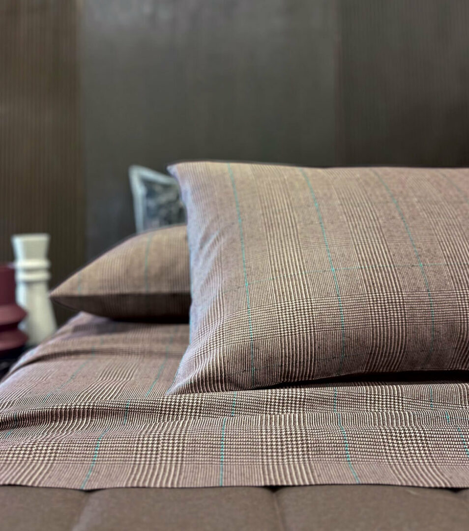 Sheet set for double bed in printed cotton sateen, bottom sheet in solid color.