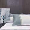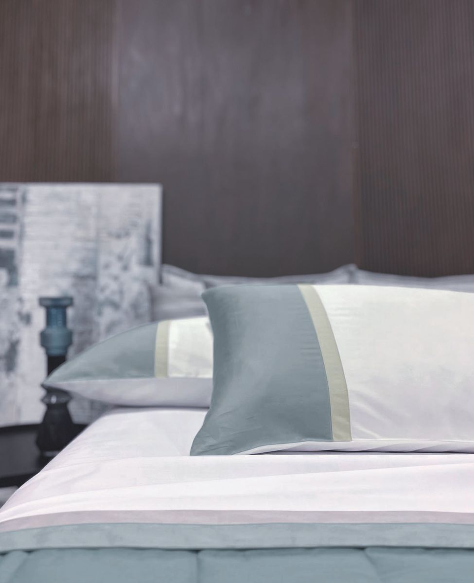Sheet set for double bed engineered in three colors, bottom sheet in solid color sateen.
