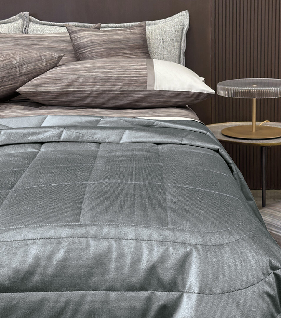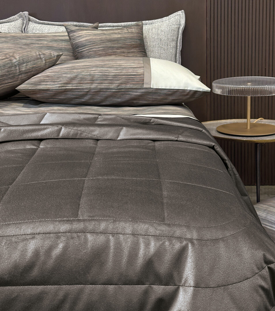 Elegant, quilted bedspread for double bed with jacquard pattern.