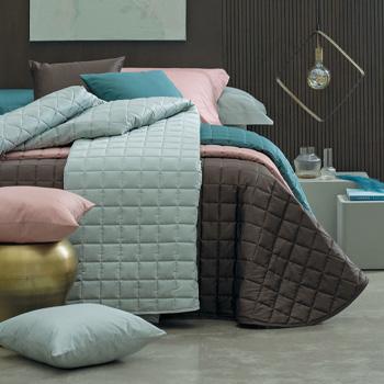 Bedspreads, also called quilts, are a great classic of bed sets; designed to cover every type of bed and to meet every need, should be combined with sheets and pillowcases to create an even more welcoming environment. Dondi offers solid cotton padded bedspreads, available in 200 thread count or 300 thread count cotton satin. They combine great quality materials, softness and comfort, all with an elegant and beautiful style that fits perfectly to different tastes and sleeping areas; they are ideal to coordinate with all the printed sheets, a real passepartout for any style – modern and contemporary or classic and romantic. Dondi offers more classic quilting, such as checked quilts, and others with more original and modern designs. Among the many bedspreads you can find: