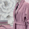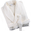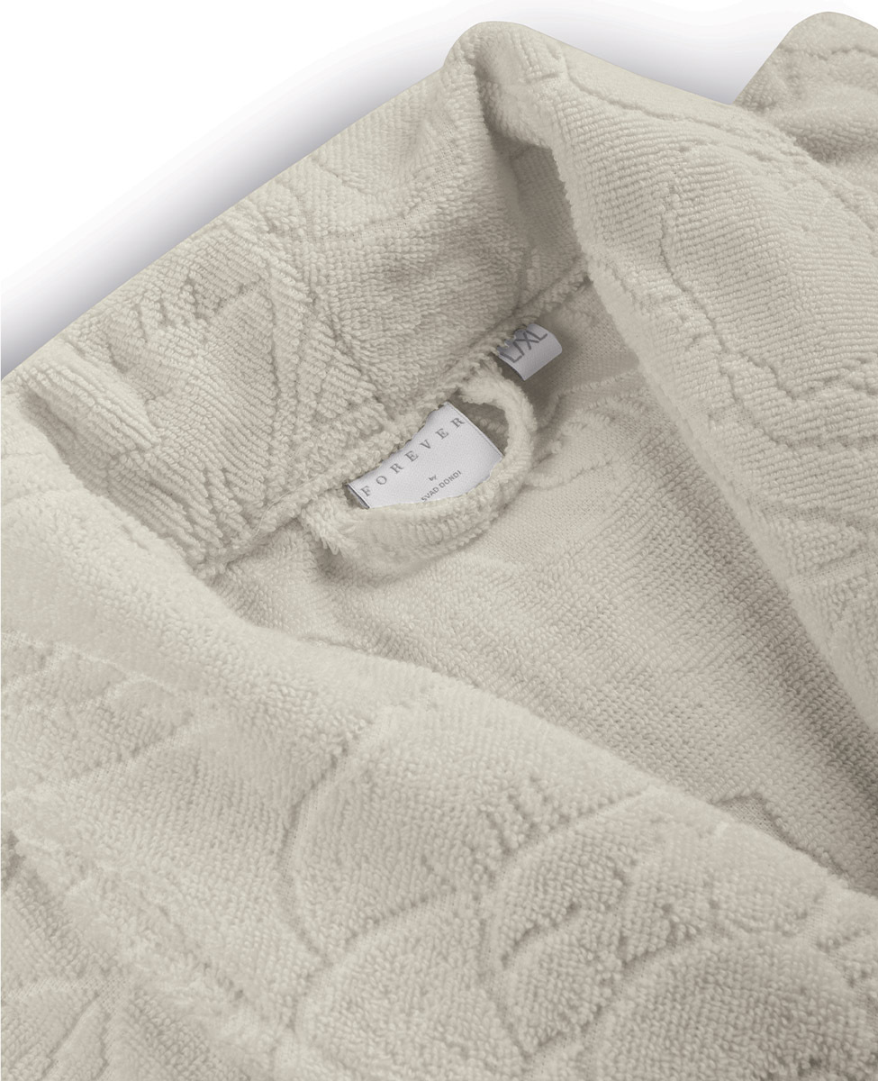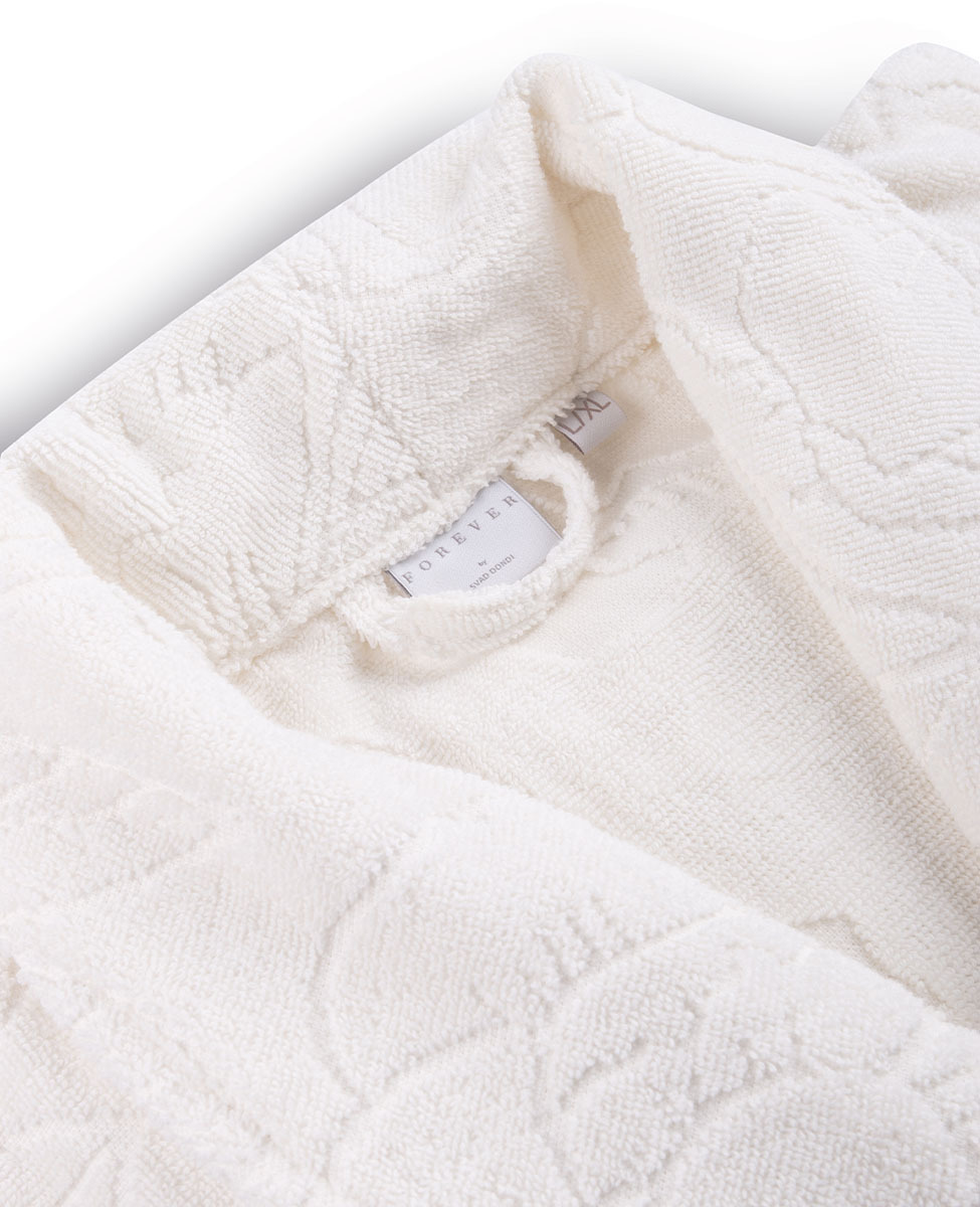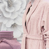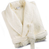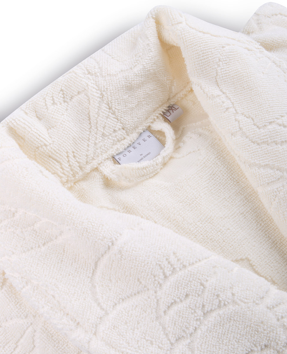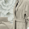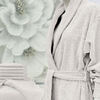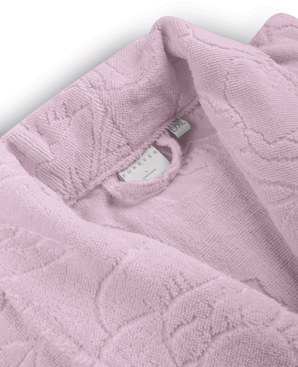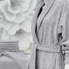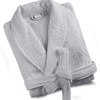 Accappatoio sciallato in tinta unita con motivo floreale piazzato in jacquard con tasche inserite nei fianchi, taglia S/M, lunghezza 110 cm.