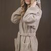 Accappatoio unisex con cappuccio in tinta unita con bordo jacquard spigato, taglia L/XL.