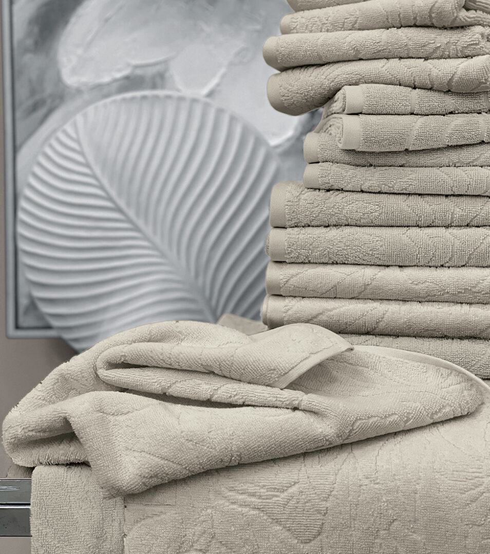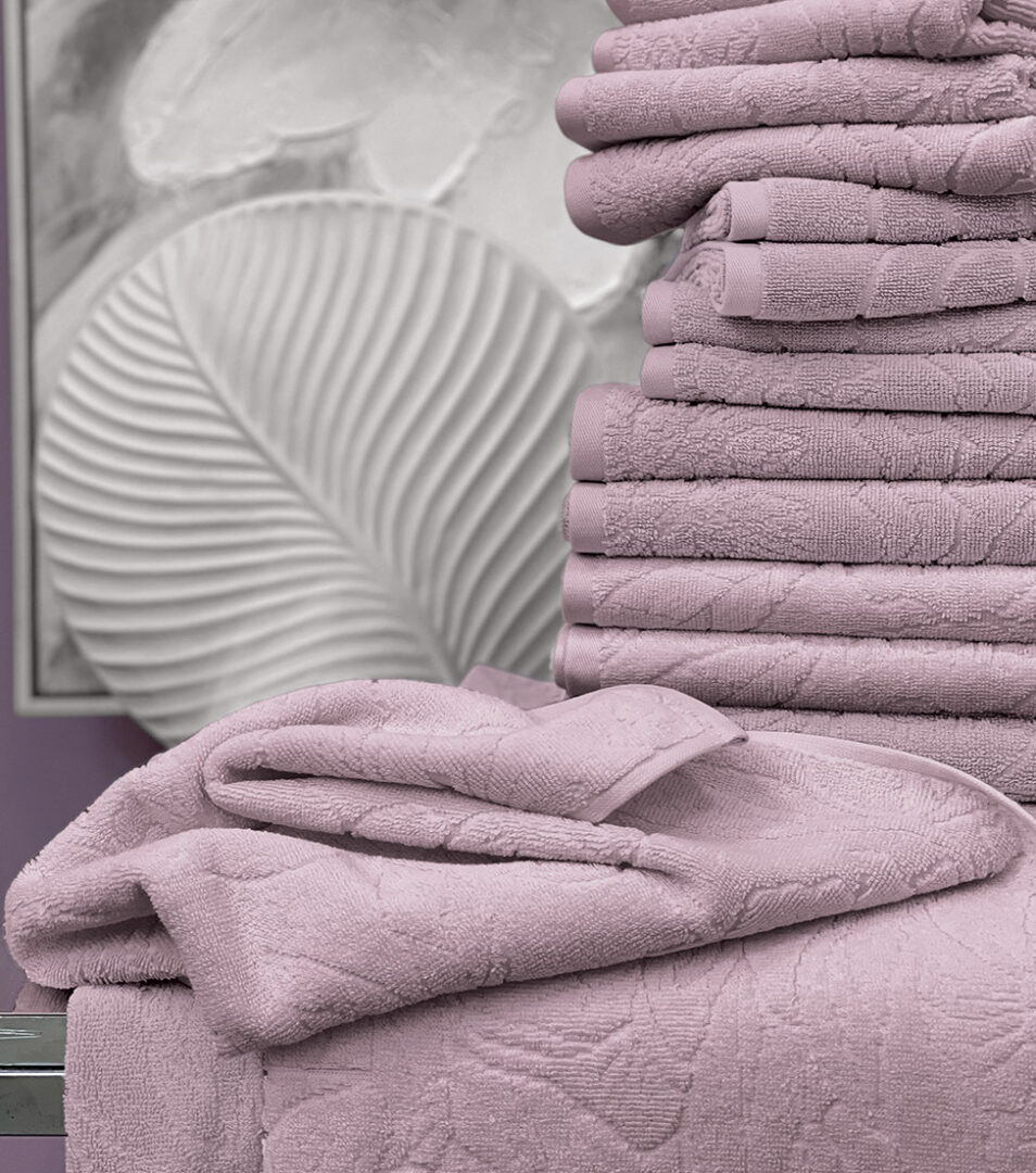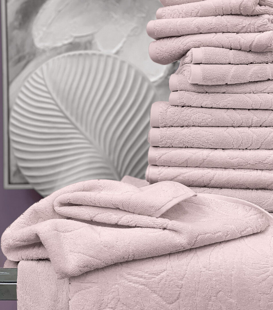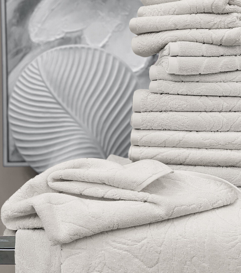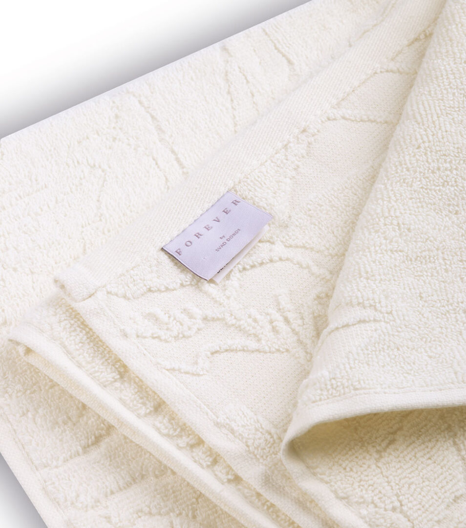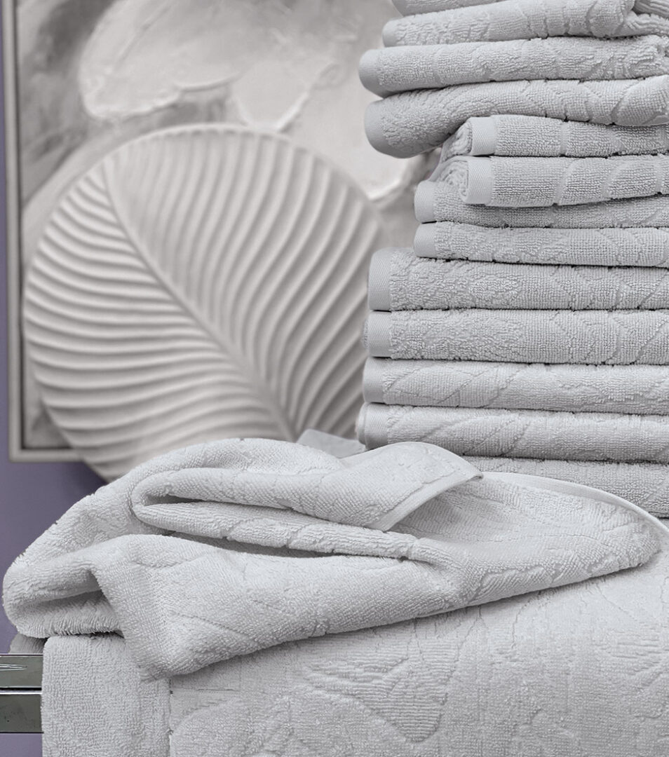 Coppia 1+1 di asciugamani in spugna di cotone tinta unita con motivo floreale piazzato in jacquard.