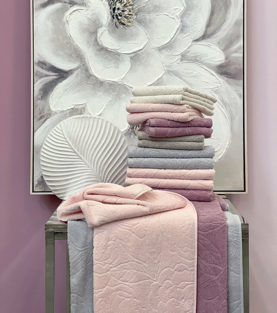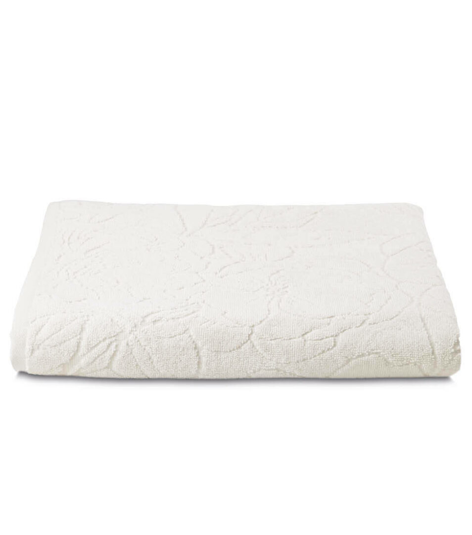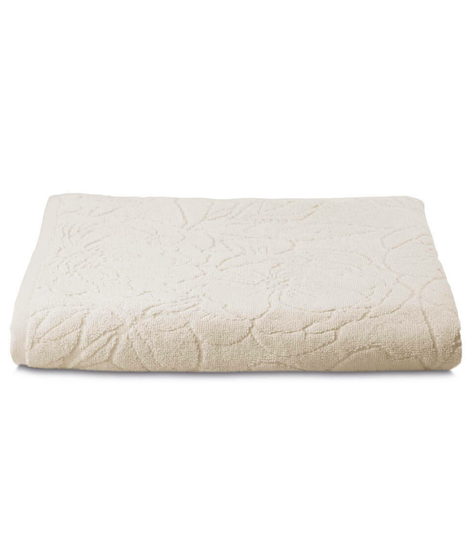 Telo bagno in tinta unita con motivo floreale piazzato in jacquard.