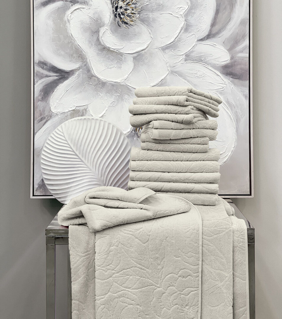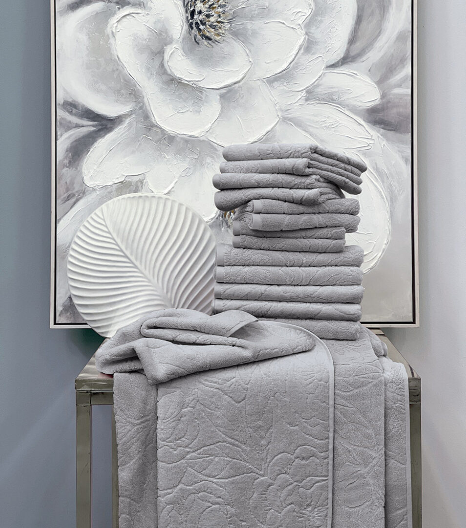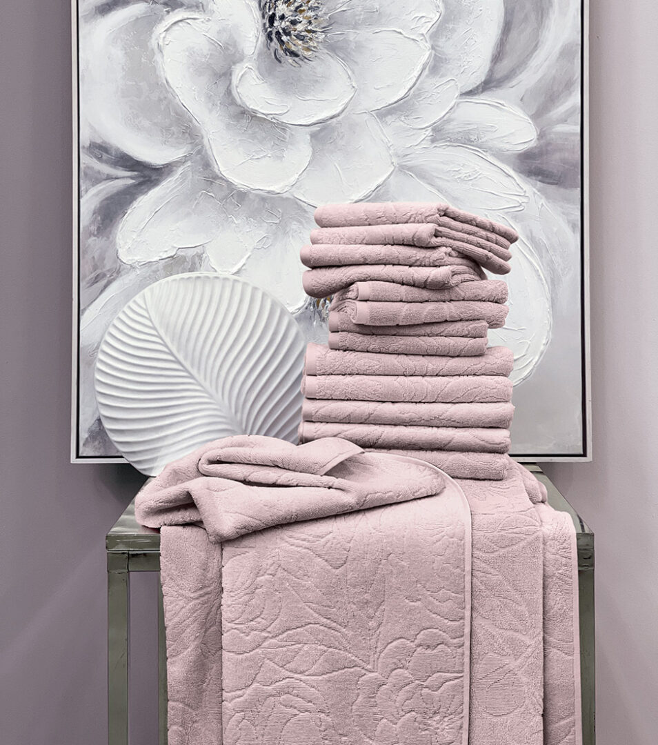 Telo bagno in tinta unita con motivo floreale piazzato in jacquard.