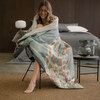 Morbido e avvolgente caldo pareo con stampa piazzata, sotto in morbido cotone garzato tinta unita.