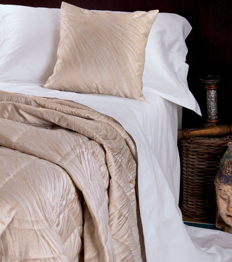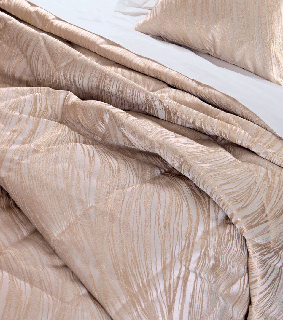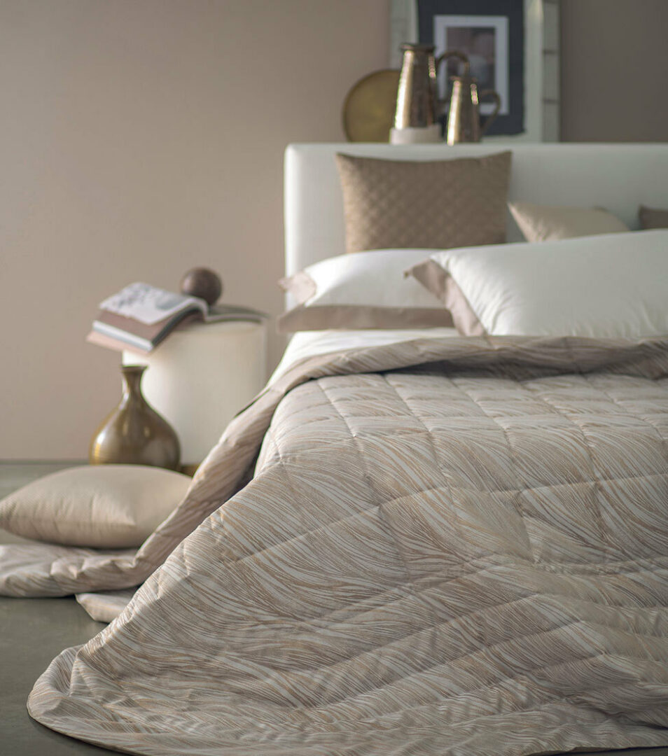 Elegante copriletto trapuntato matrimoniale con trama jacquard.