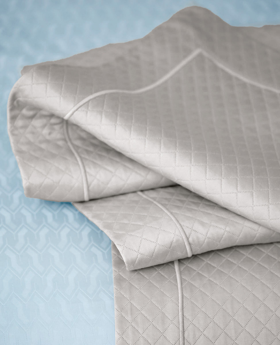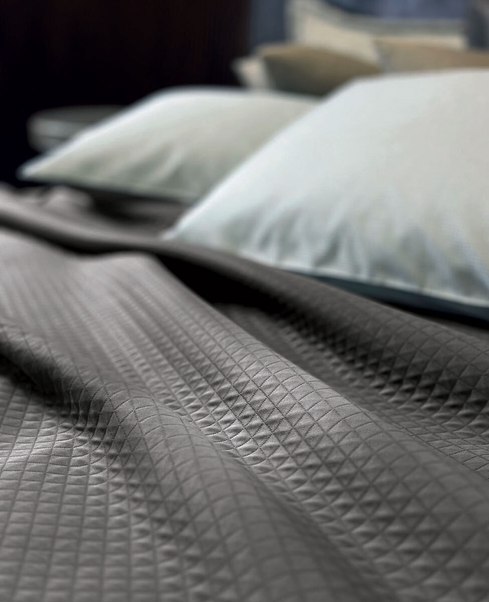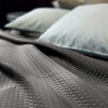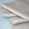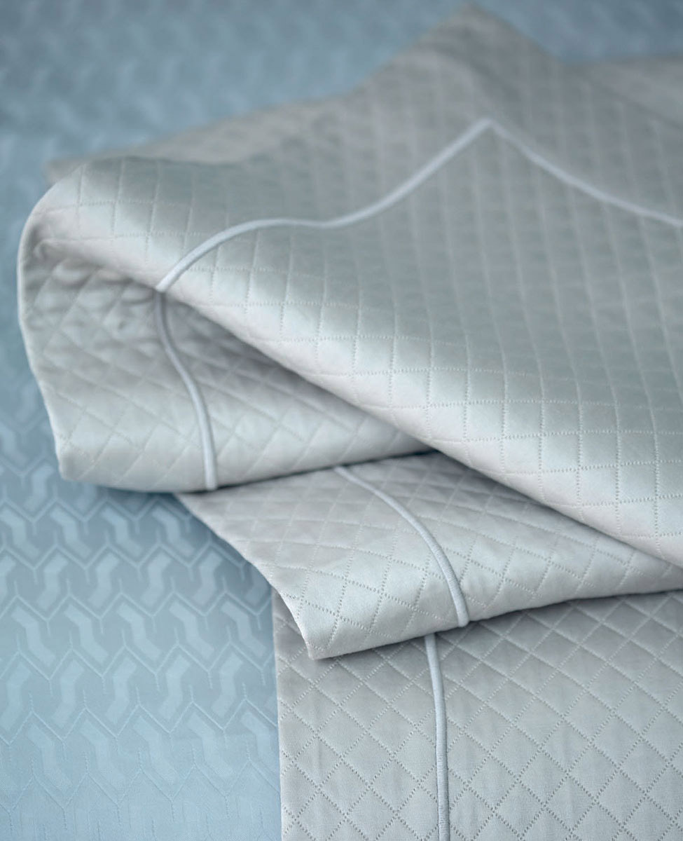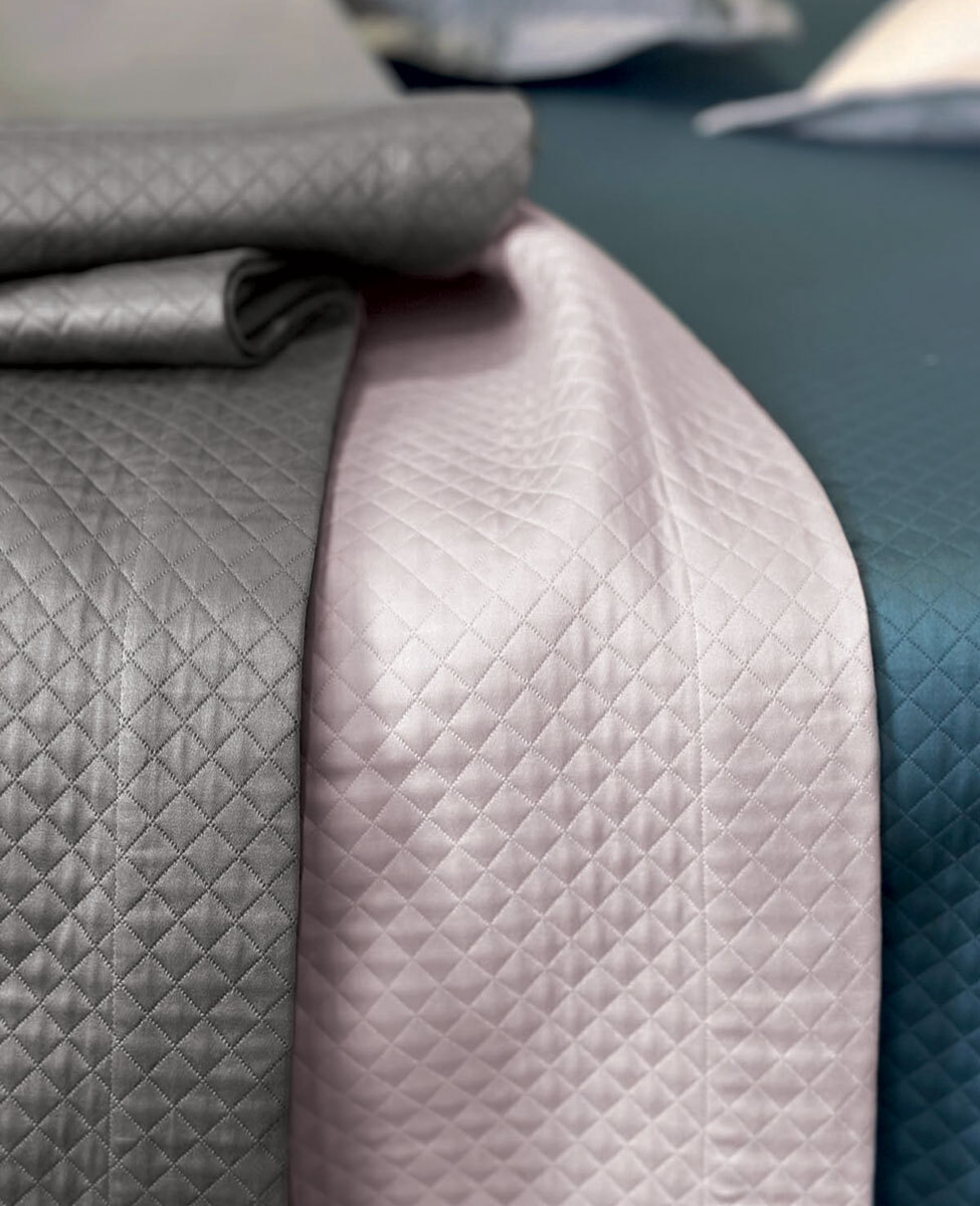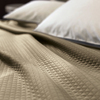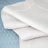 Copriletto matrimoniale in piqué tinta unita rifinito con angoli a cappuccio.