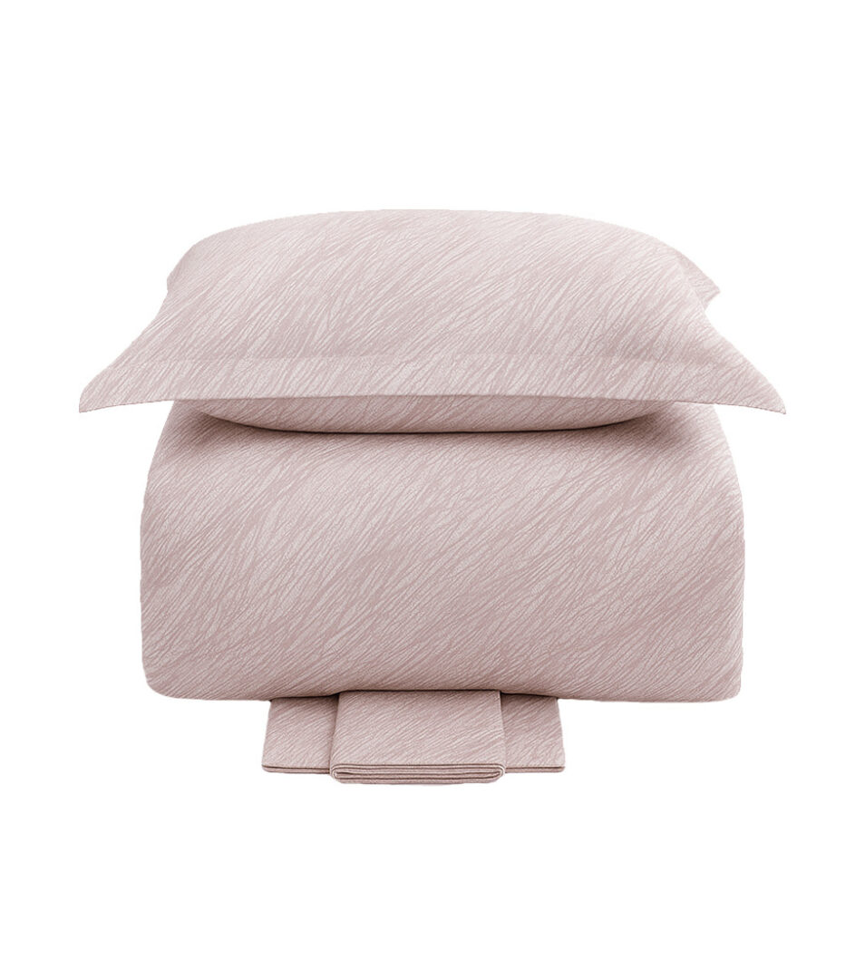Completo copripiumino matrimoniale in raso di cotone stampato, sottosacca e lenzuolo sotto in raso tinta unita.