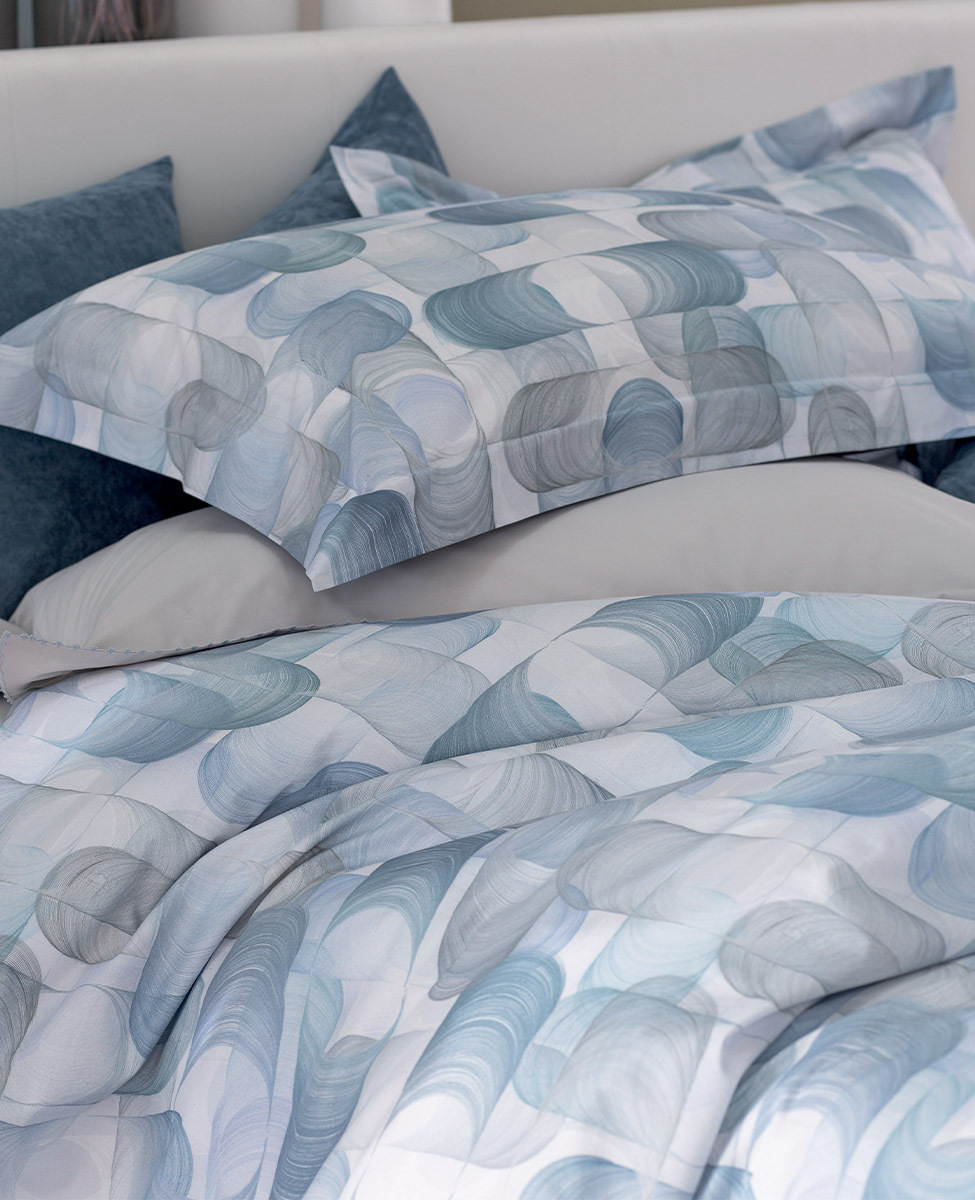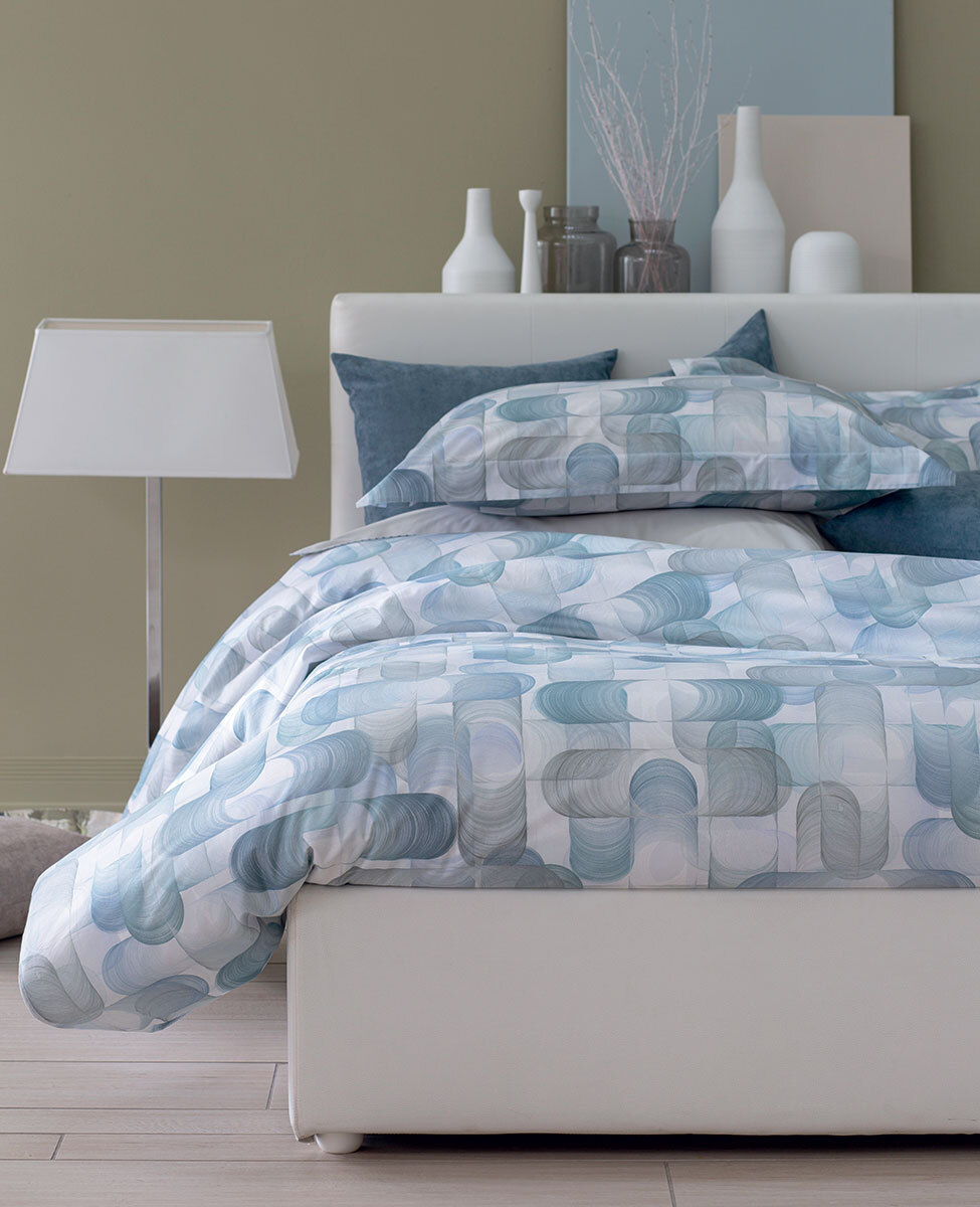 Parure copripiumino matrimoniale 3 pezzi in percalle di cotone stampato, sottosacca in percalle tinta unita.