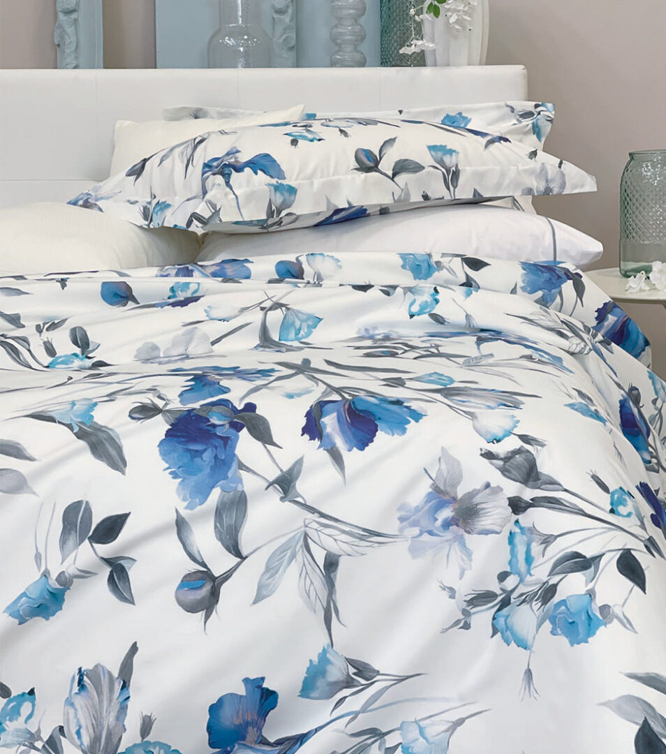 Parure copripiumino matrimoniale 3 pz in percalle con stampa all over, sottosacca in percalle tinta unita.