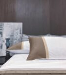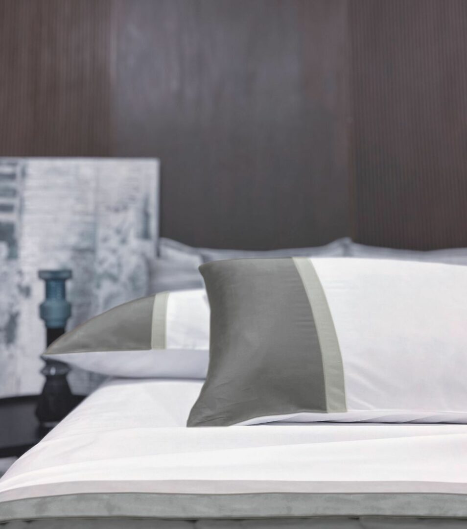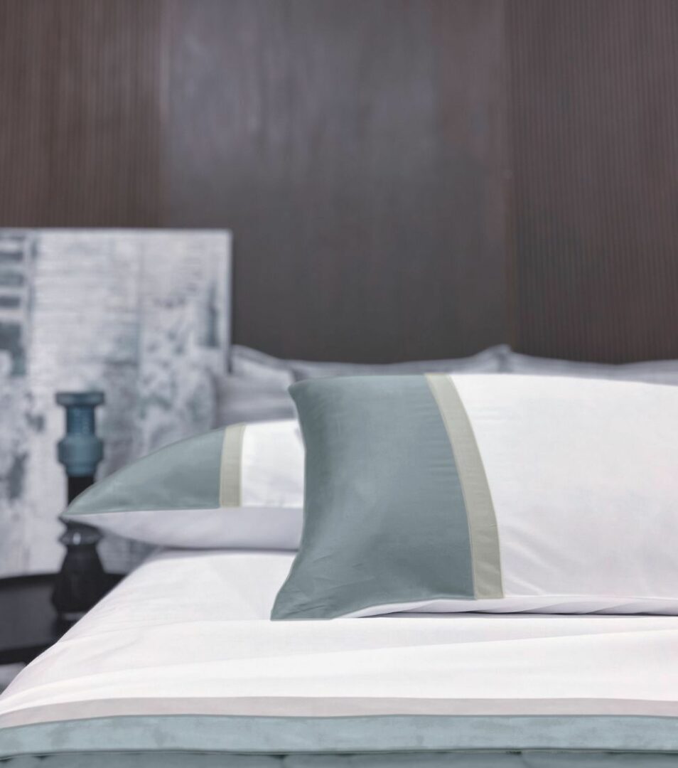 Completo copripiumino matrimoniale costruito a tre colori tinta unita, sottosacca e lenzuolo sotto in raso tinta unita.