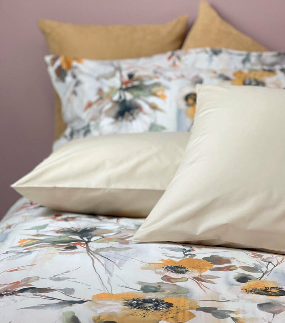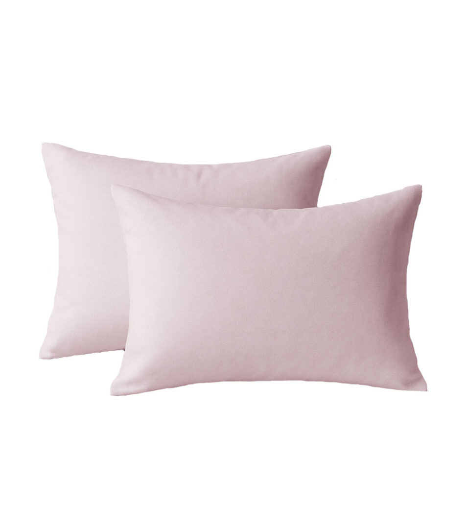 Coppia di federe in fresco percalle di cotone tinta unita, modello a sacchetto.