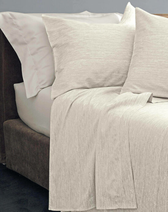 Cuscino in puro raso di cotone stampato con trama ad effetto seta.