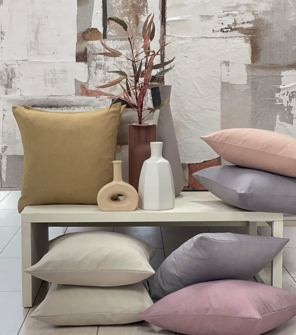 Cuscino arredo in jacquard tinta unita con lavorazione diagonale, sfoderabile tramite cerniera invisibile.