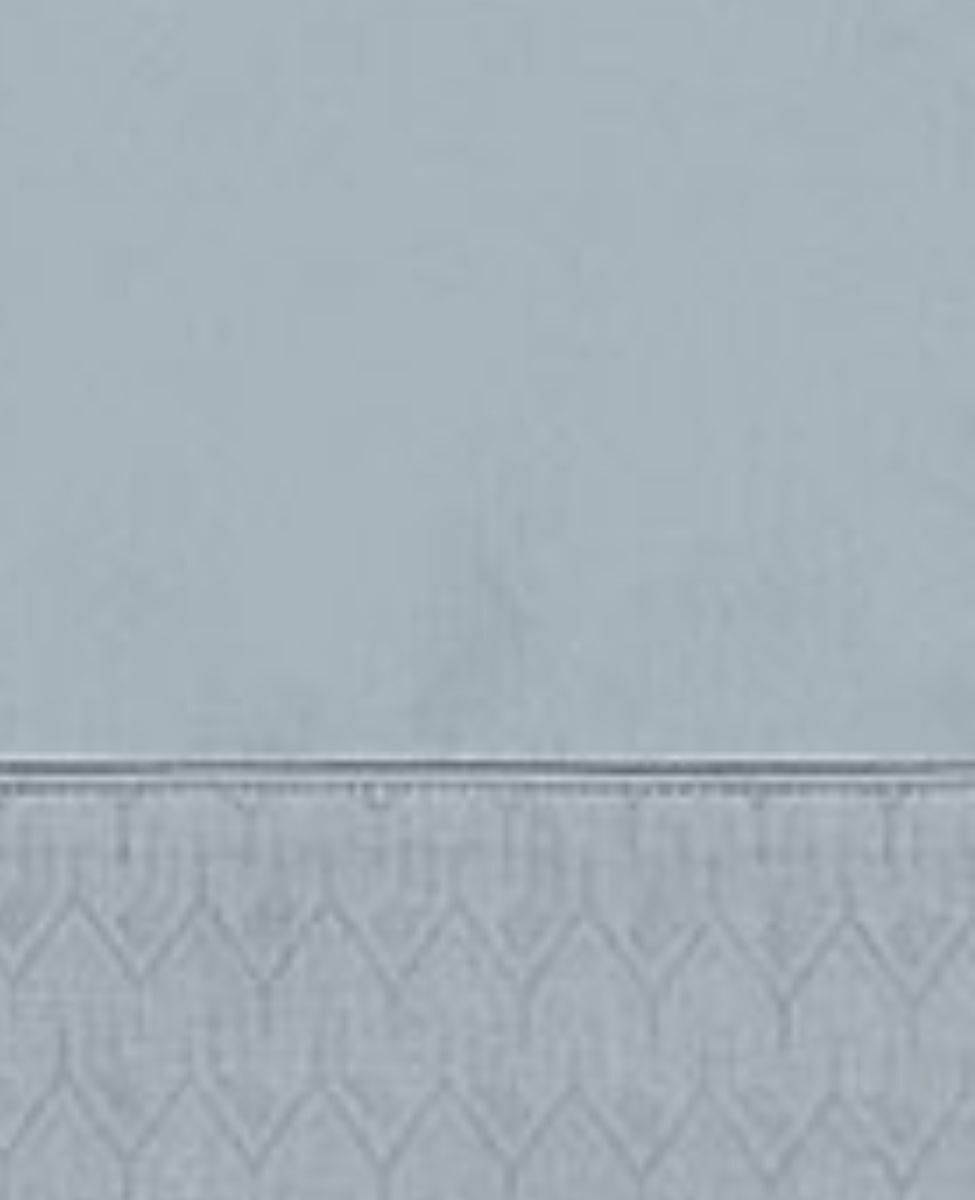 Completo lenzuola matrimoniale in jacquard di cotone rifinito con coda di topo tono su tono, lenzuolo sopra tinta unita con fascia applicata jacquard, federe a sacchetto rifinite con coda di topo e retro tinta unita.