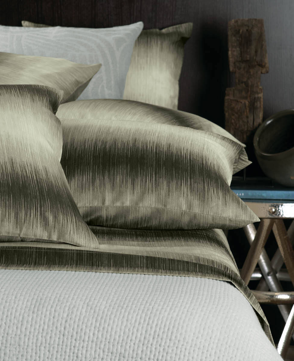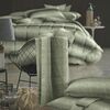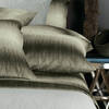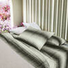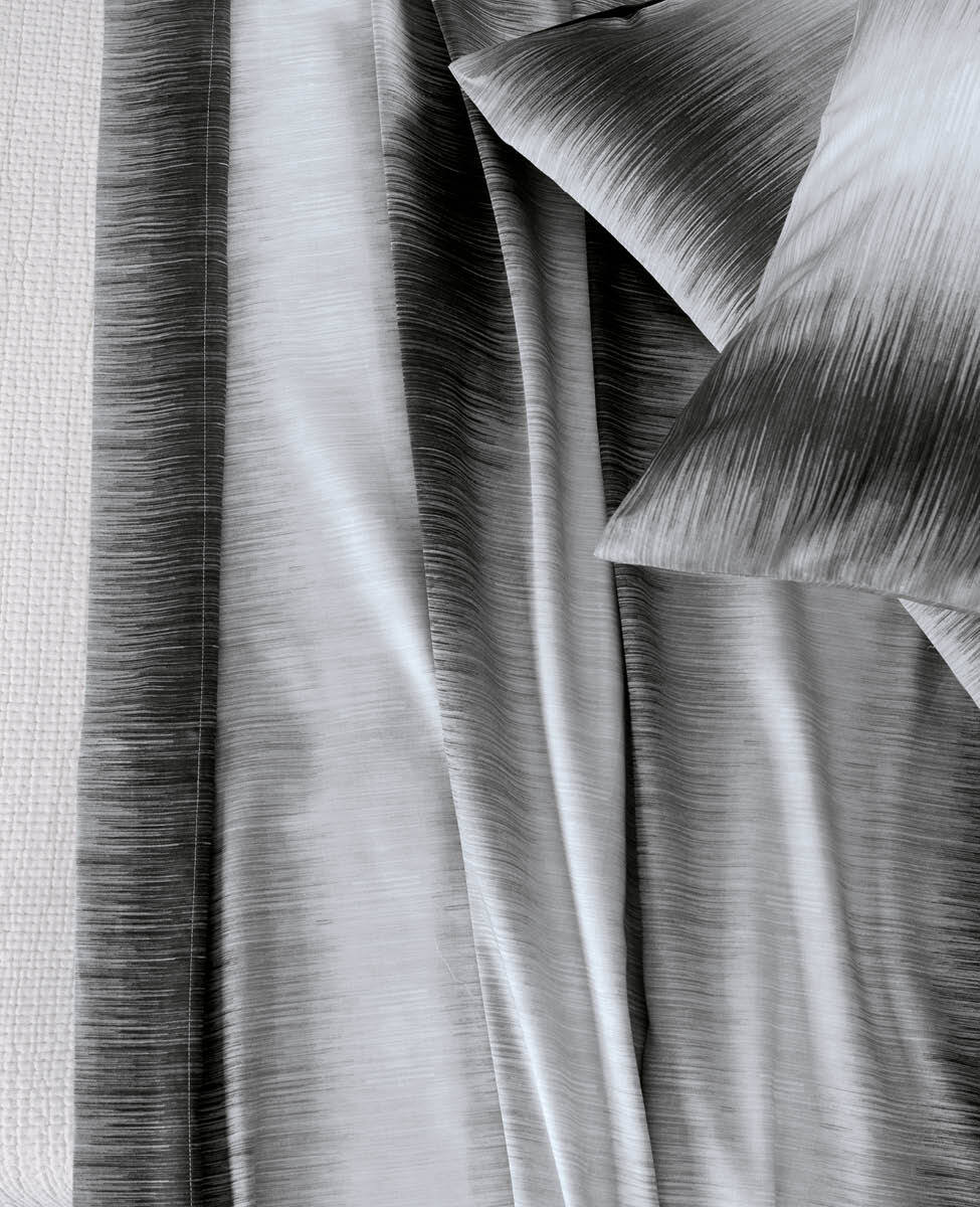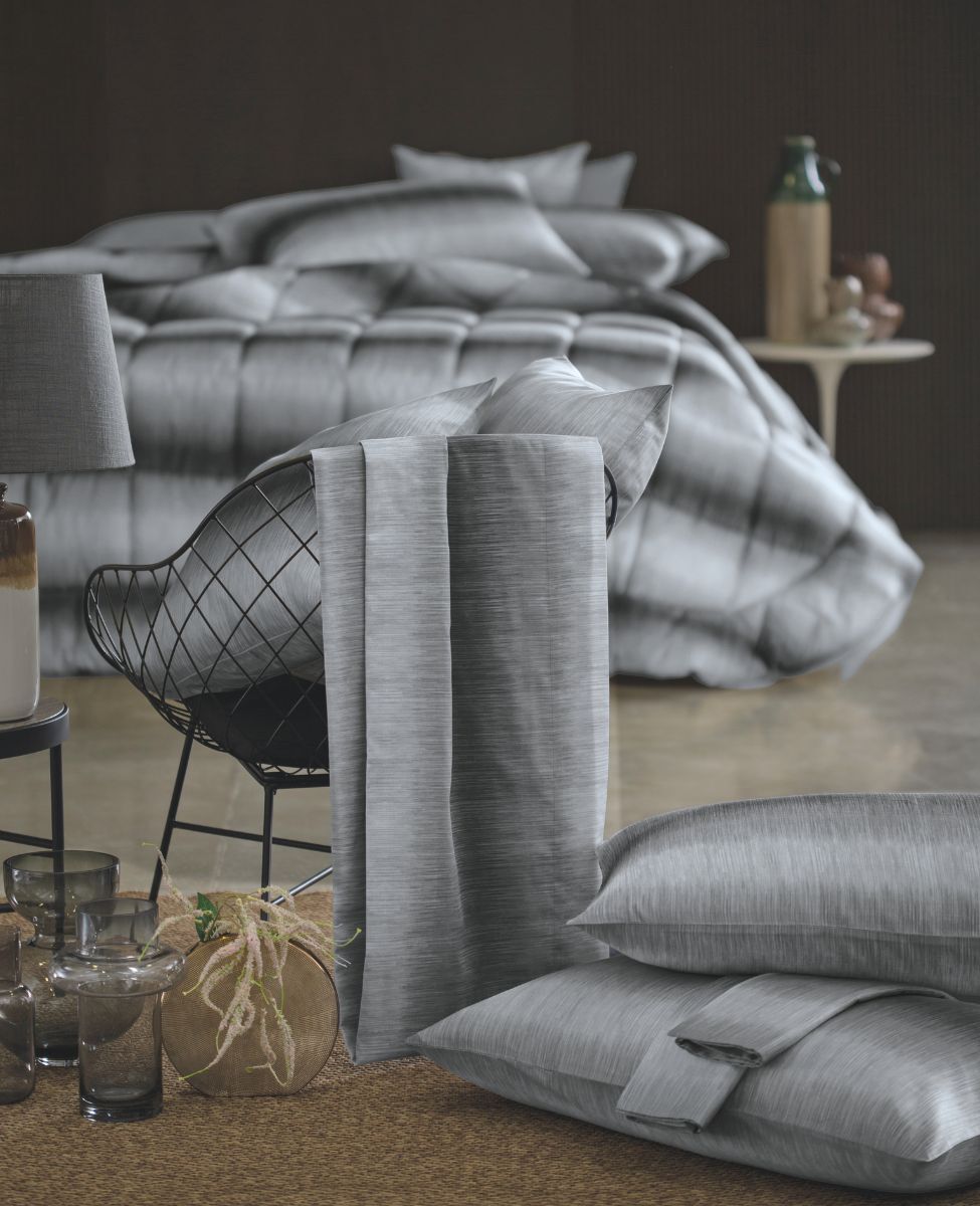 Completo lenzuola matrimoniale in raso di cotone stampato con microfantasia, lenzuolo sotto in raso tinta unita.