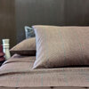 Completo lenzuola matrimoniale in raso di cotone con stampa all over, lenzuolo sotto in raso tinta unita.