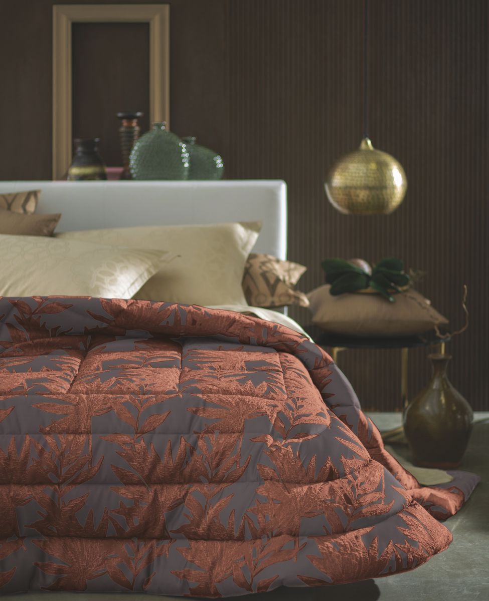 Calda e avvolgente trapunta matrimoniale con disegno jacquard.