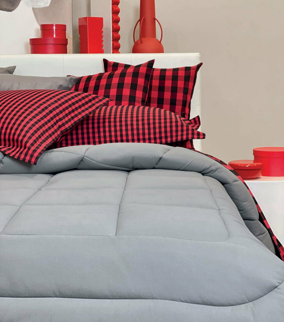 Calda e avvolgente trapunta matrimoniale in microfibra tinta unita double face con accoppiamento di due colori.
