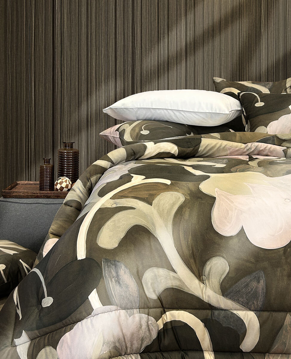 Calda trapunta matrimoniale con disegno stampato all-over.